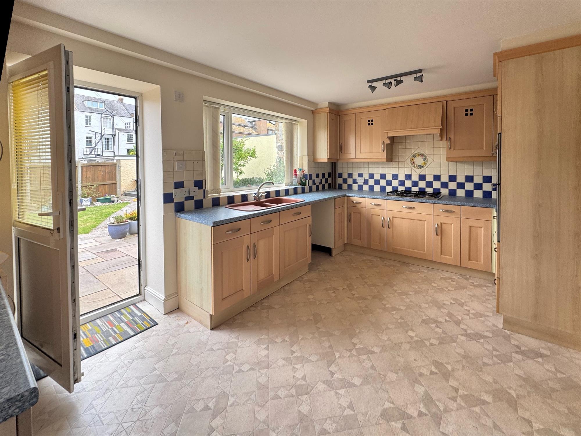 At the heart of the home is a bright and airy kitchen, complete with built-in appliances and a lovely view over the rear garden. The spacious, dual-aspect L-shaped sitting room offers a welcoming space for relaxation, flowing through to a conservatory with double doors that open directly onto the garden patio. The enclosed rear garden is south-facing with a mix of lawn and patio. The property also benefits from rear pedestrian access and a private parking space—a real bonus in such a central location.