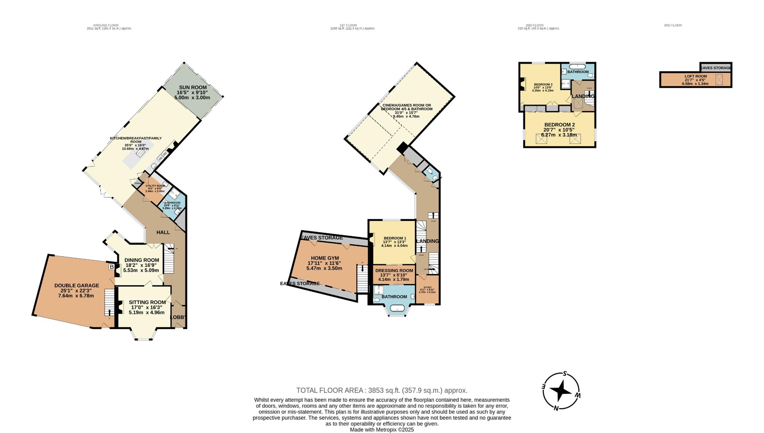 • First floor Cinema / Games Room (Alternatively could used as Bedrooms 4 & 5 and Bathroom)