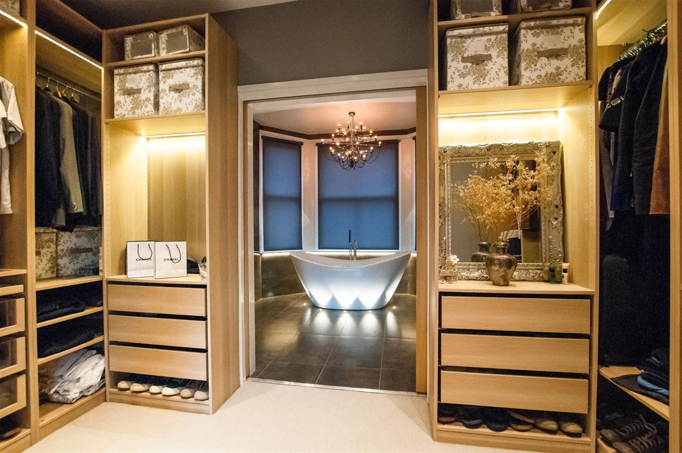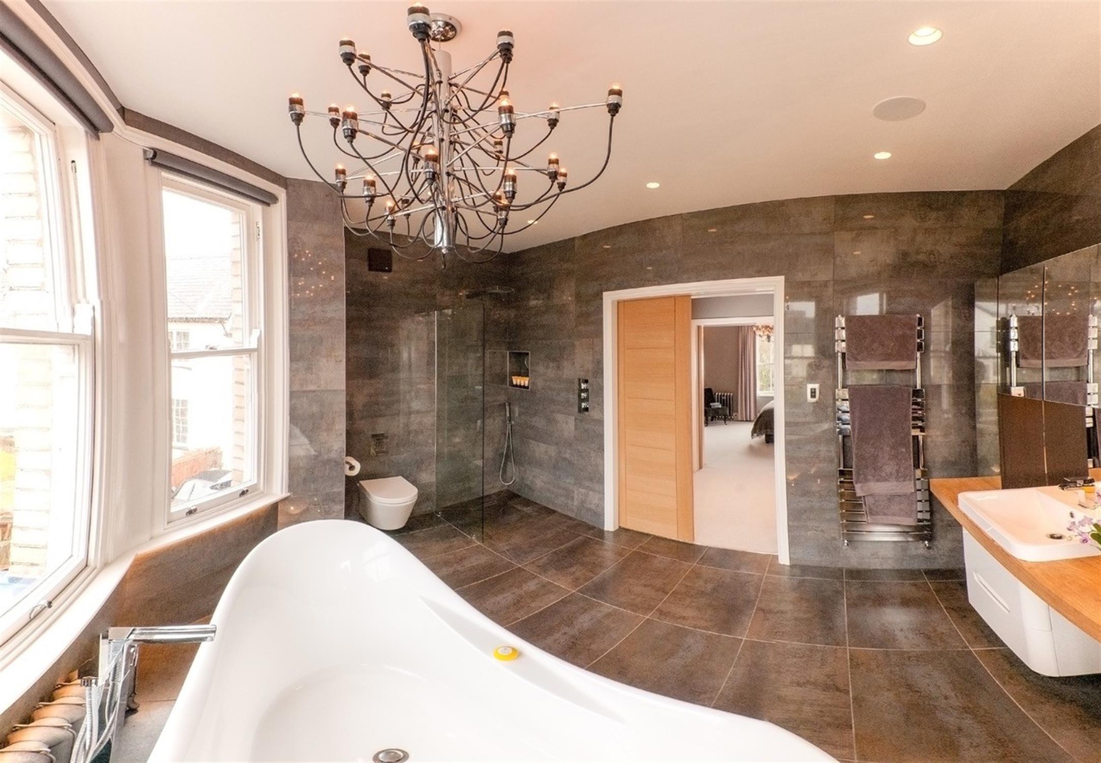 EN-SUITE BATHROOM A beautifully designed bathroom with a freestanding feature bath enhanced by underlighting. Walk-in rainfall shower. Low-level W.C. Wash hand basin. Fully tiled floors and walls. Heated towel rail. Bay window with electric blinds for privacy and ambiance.