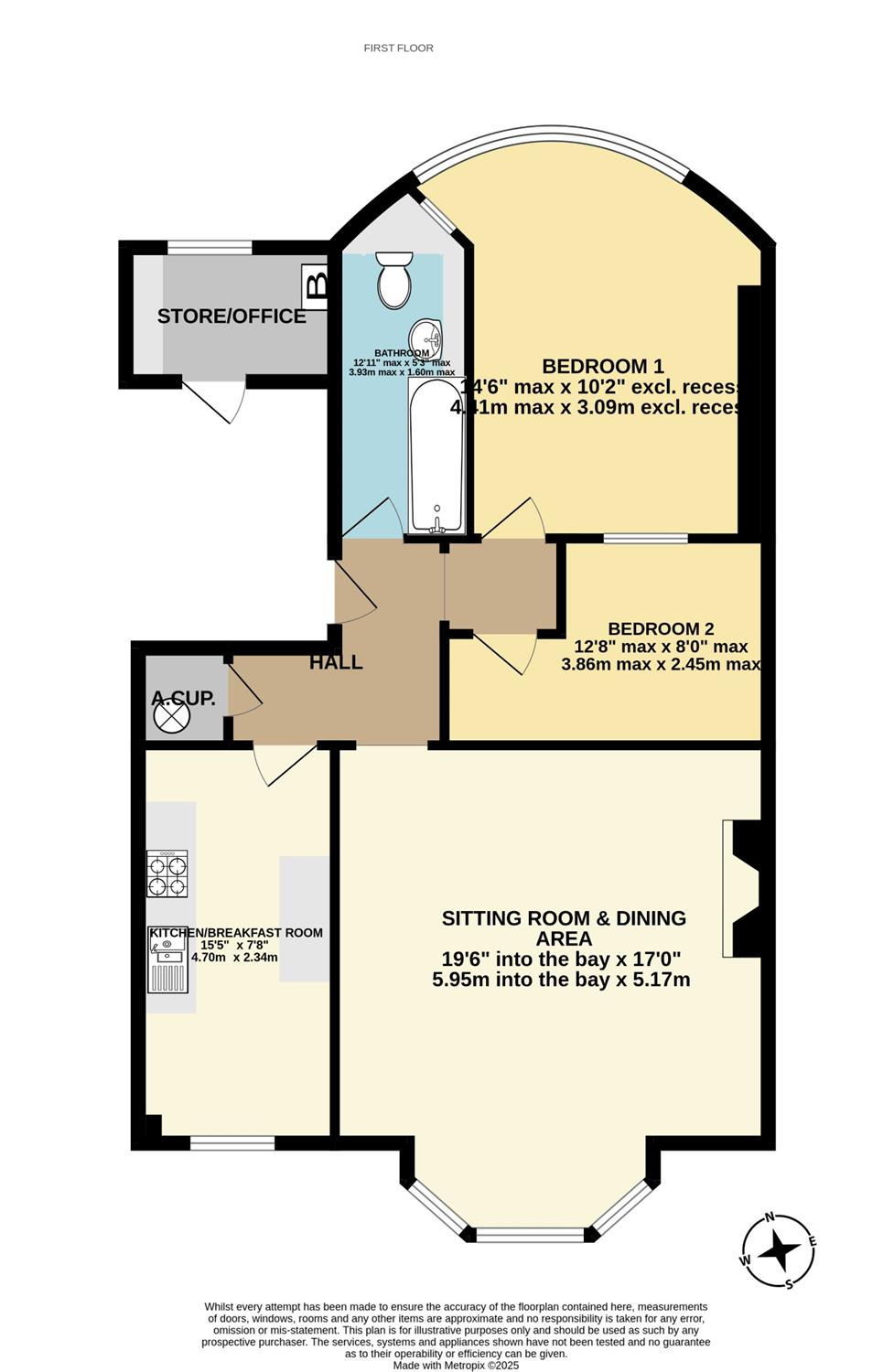Sitting room & dining area – 5.95 into the bay x 5.17