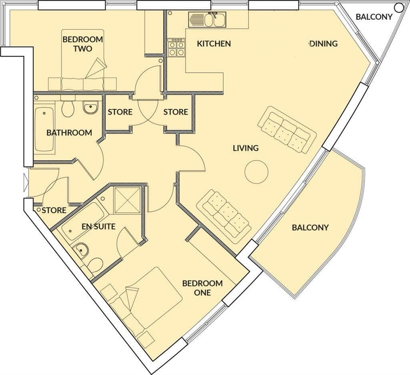 TWO BALCONIES, one off of the sitting room which is large enough for a good sized table and chairs with outside light, and a triangular shaped balcony off of the dining room. This property also has the benefit of an allocated