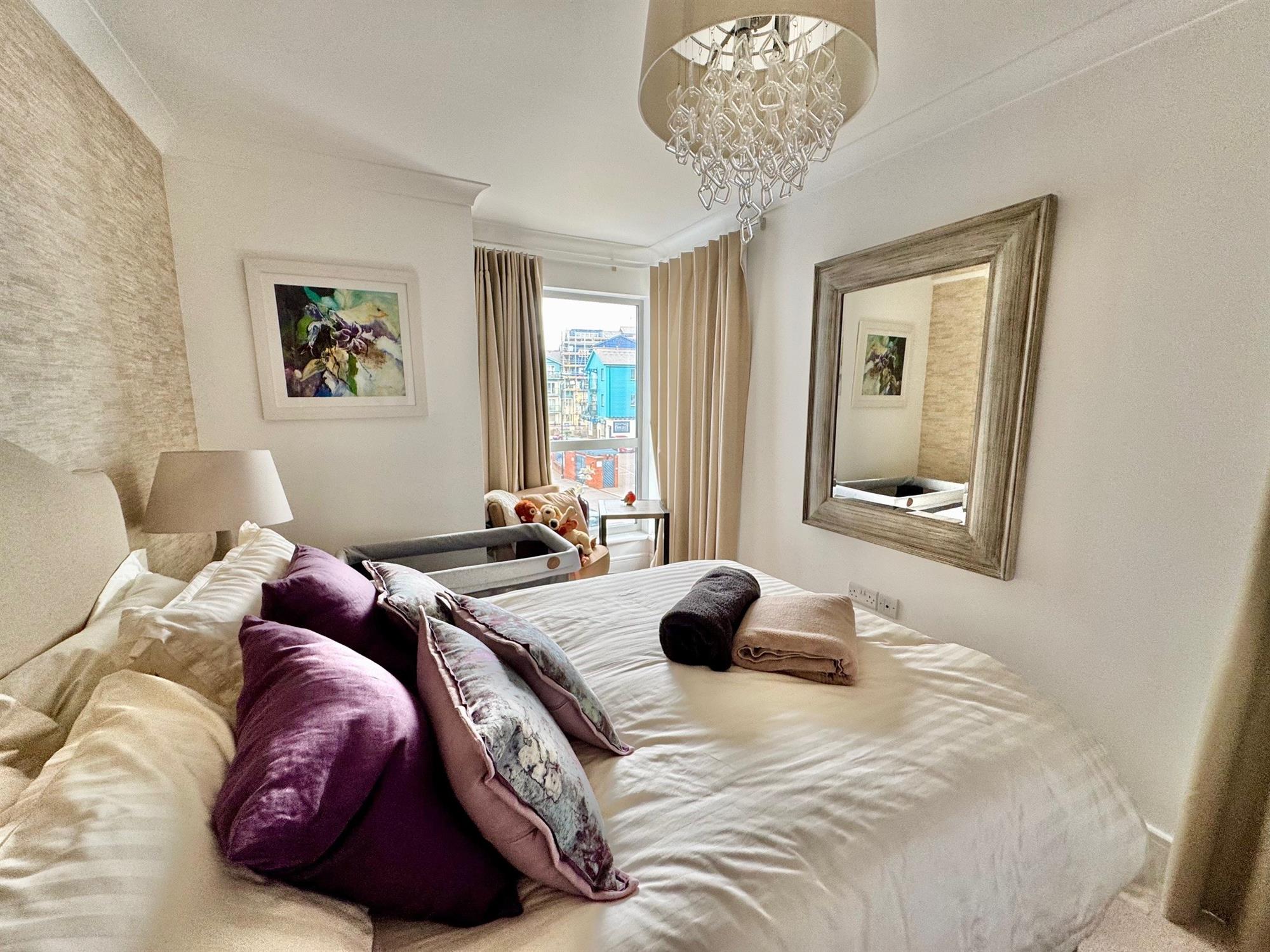 There are two double bedrooms, including a generous master suite with an en-suite bathroom and separate shower and a further guest double bedroom served by a separate bathroom. A particular highlight of the property is its two South/South-Westerly facing balconies, offering ever-changing Estuary and sea views. This is a rare opportunity to acquire a premium apartment in a highly sought after location — it really must be seen to be fully appreciated. It is immaculately maintained and has the benefit of an allocated parking space and offered for sale with no onward chain.