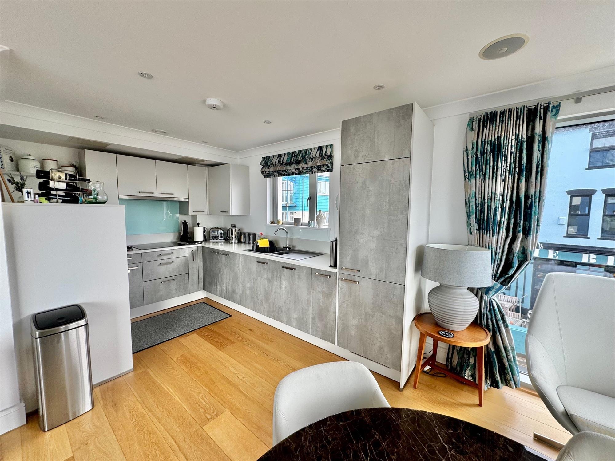 KITCHEN AREA 8' 7" (2.62m) x 8' 5" (2.57m)Quartz worktop surfaces with matching upstands. Inset 1½ bowl sink with drainer and mixer tap. Inskinkerator in cupboard below. Four ring ceramic induction hob. Cupboards and drawers under with integrated dishwasher and fridge freezer. Built-in oven and combination microwave oven. Wall mounted cupboards with cooker hood and underlighting. Ceiling spotlights. Underfloor heating. Double glazed window looking into the Marina and towards Lympstone Manor.