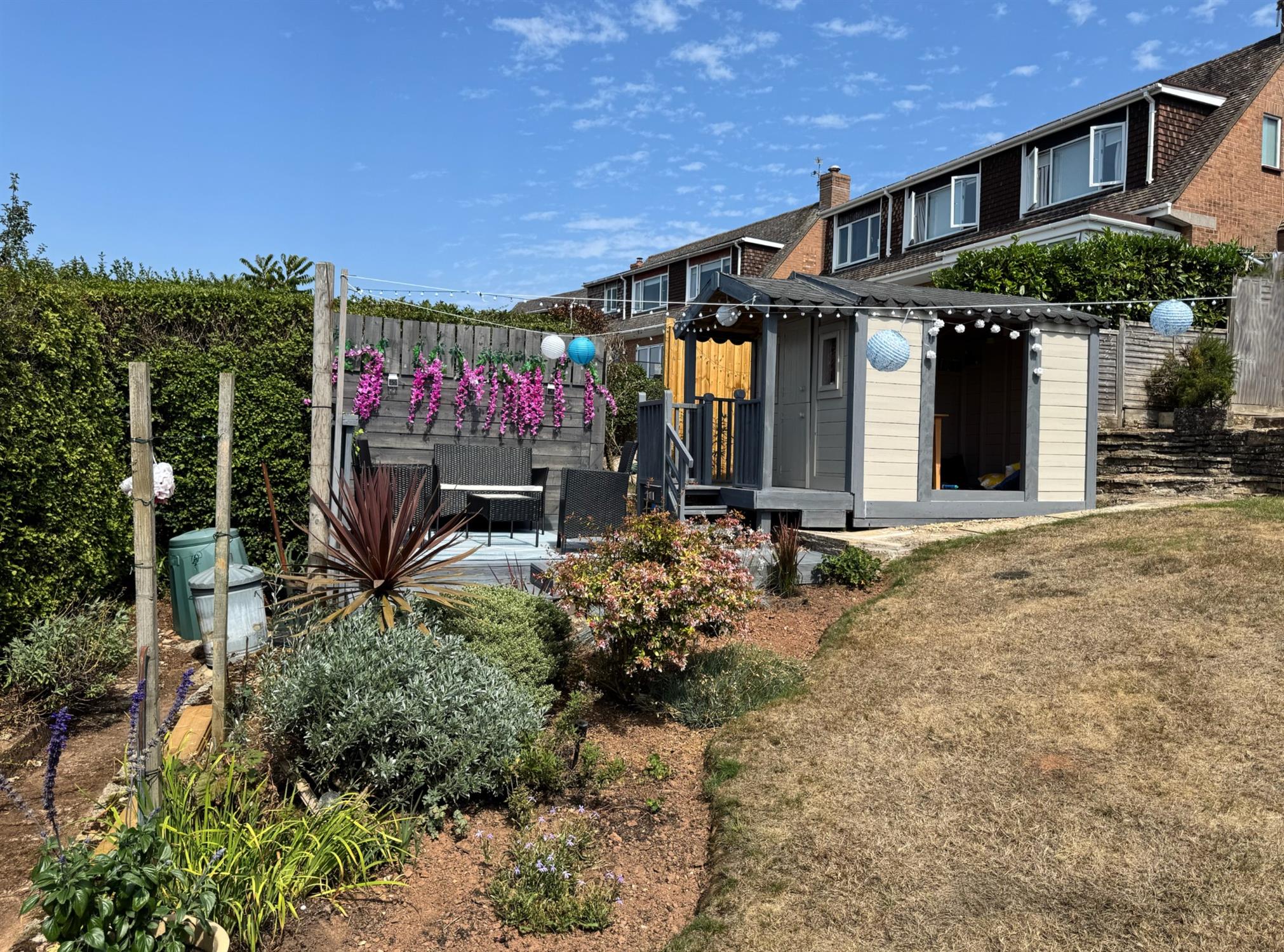SUMMER HOUSE and a decked area enjoying the sun most of the day. The garden is reasonably private and benefits from a westerly aspect.