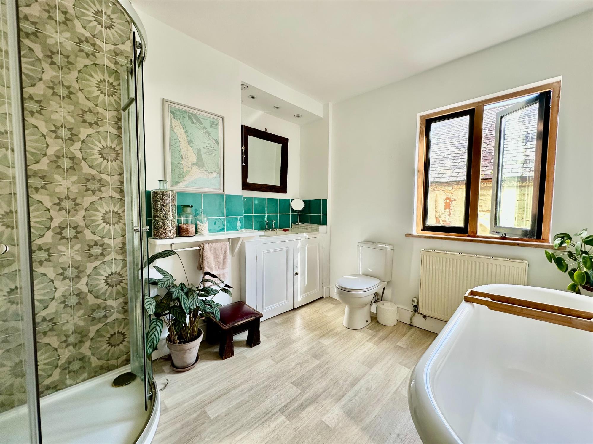 * First floor cloakroom and well-appointed bathroom/w.c. with a separate shower