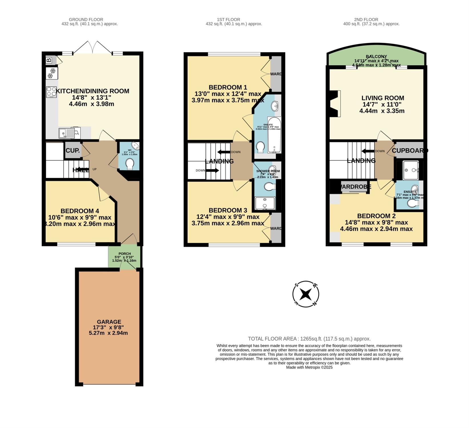 * Four well-proportioned bedrooms arranged over three floors – 2 with ensuite facilities