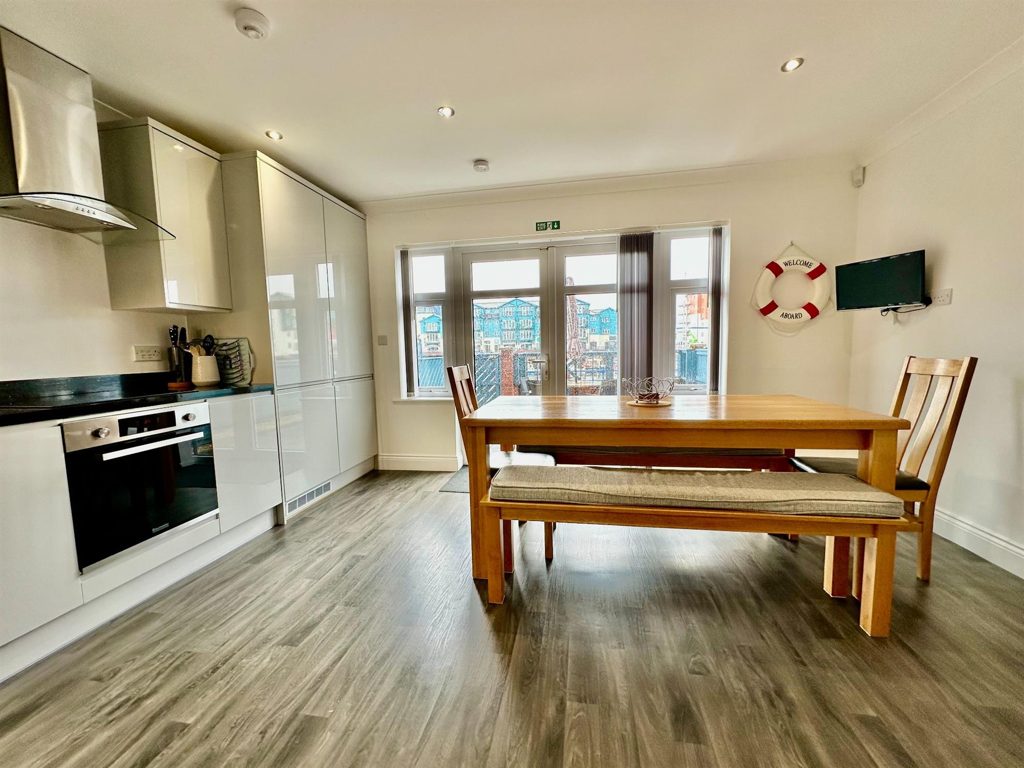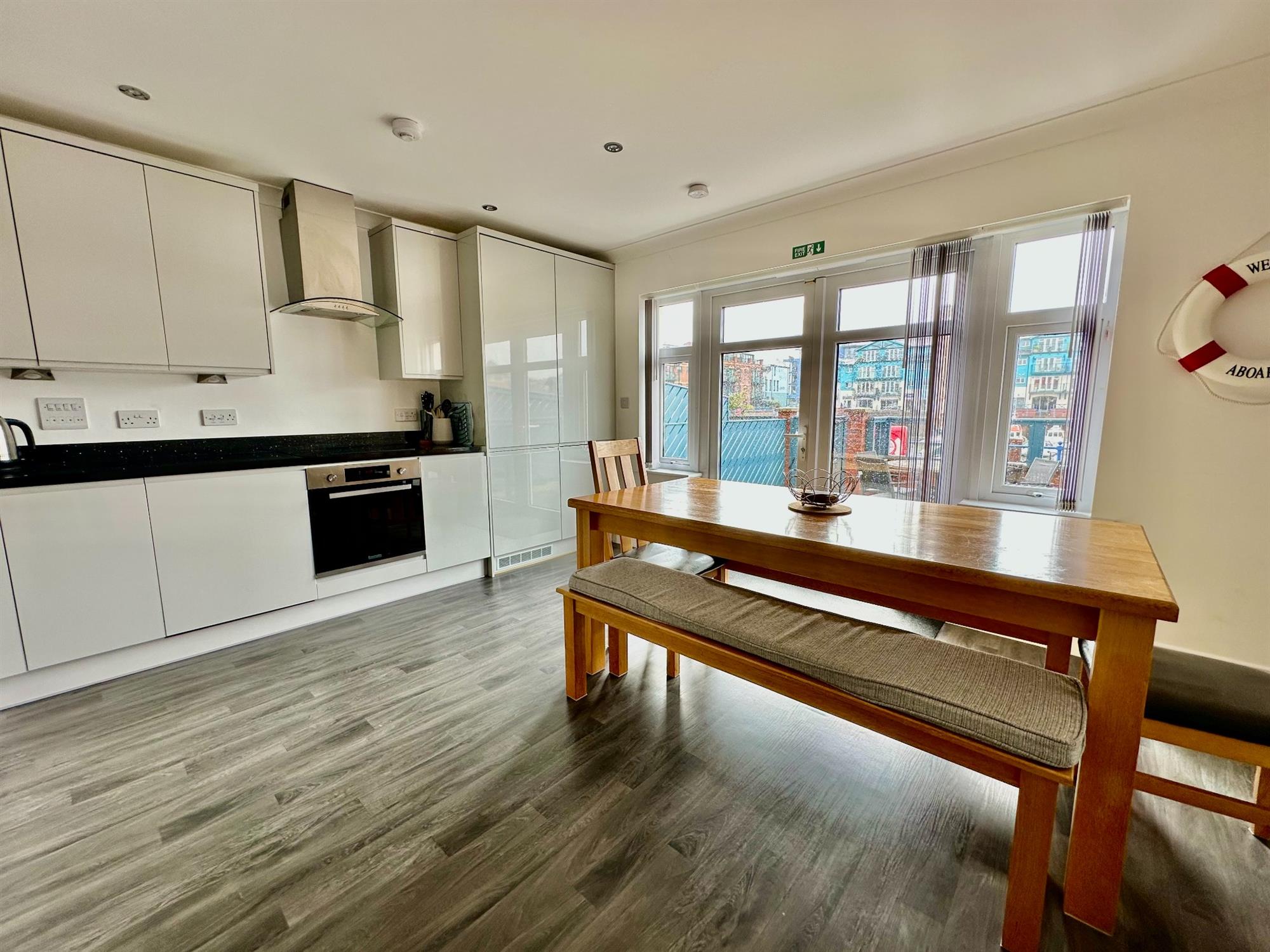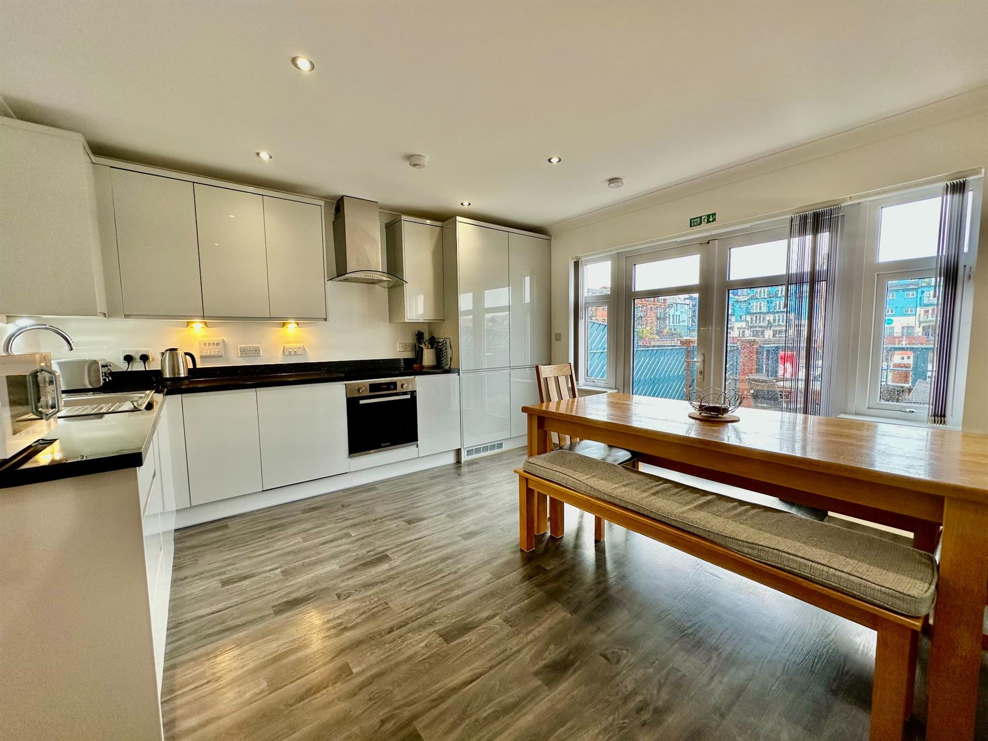 * Modern kitchen/dining room with built in appliances