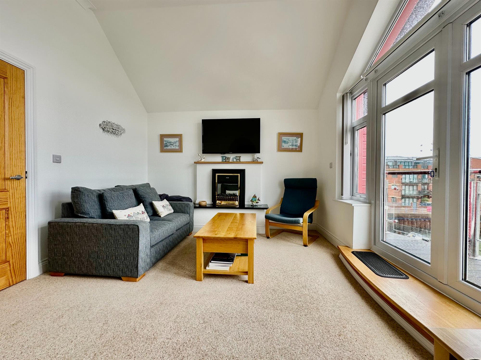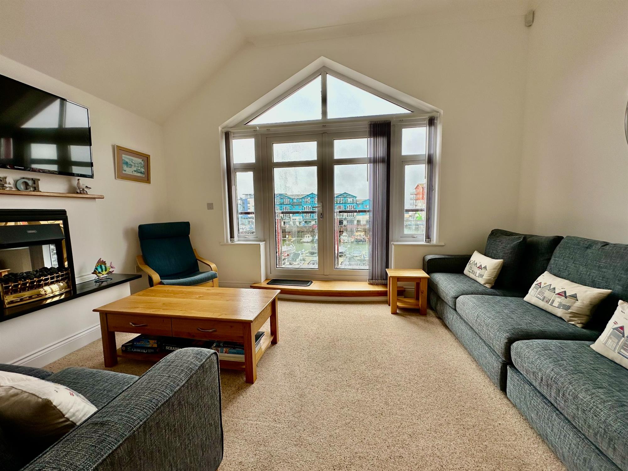 * Spacious living room and private South Westerly aspect balcony overlooking the marina