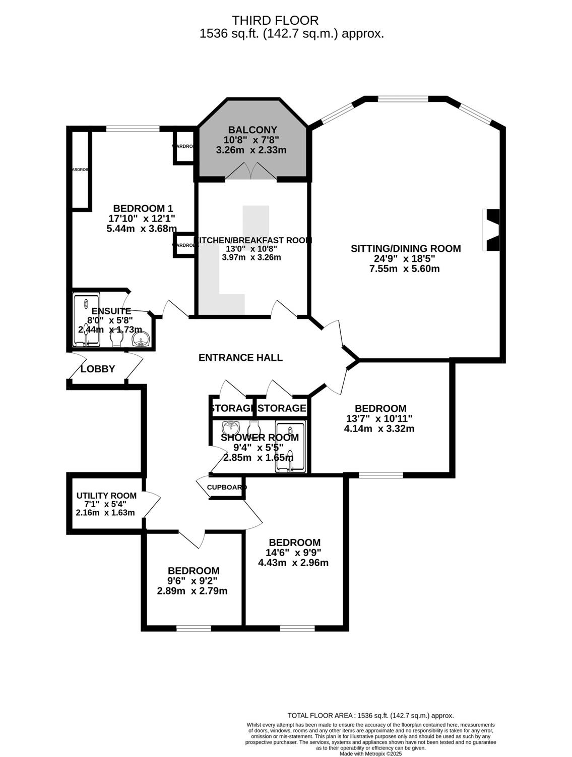 BALCONY 10' 8" (3.25m) x 7' 8" (2.34m)