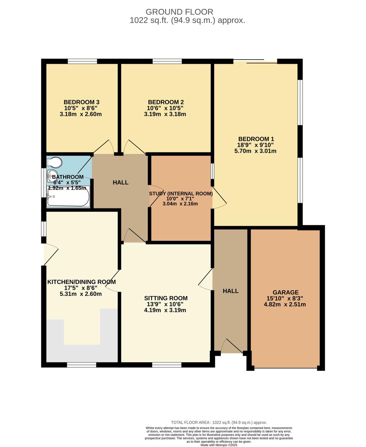 INTERNAL ROOM/STUDY (Formerly Bedroom 3) 10' (3.05m) x 7' 1" (2.16m)