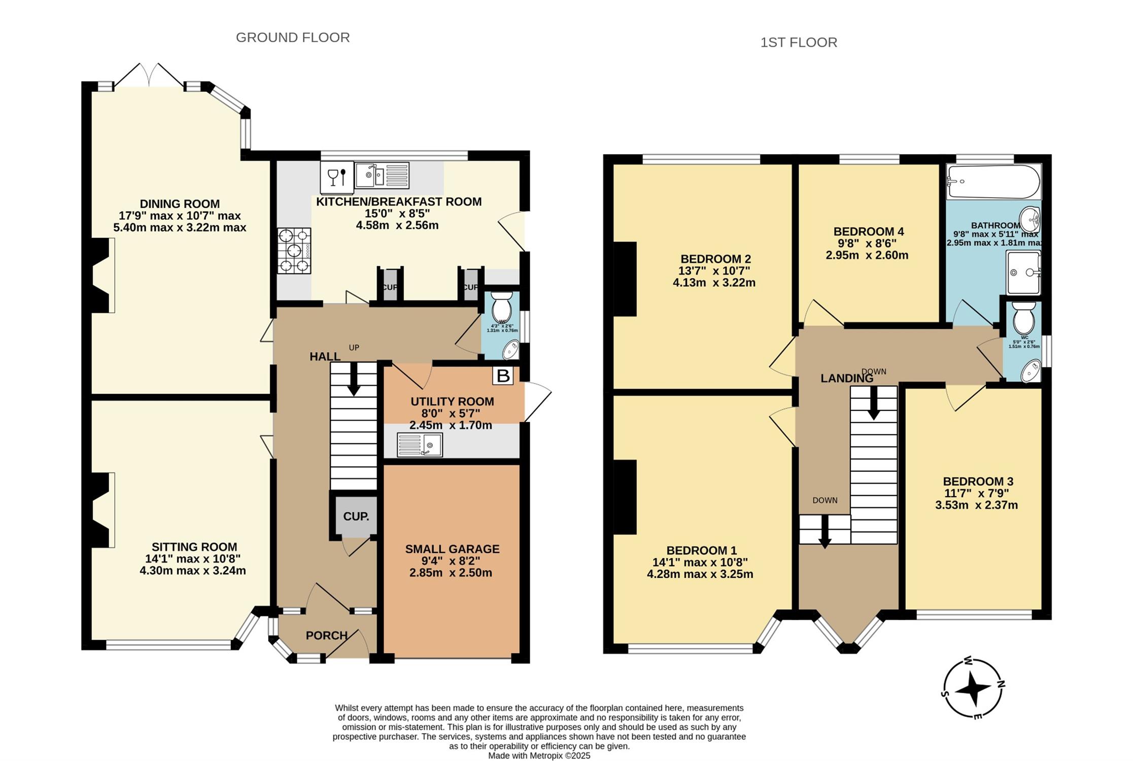 Bedroom 1: 14' 0'' max. x 10' 6'' max. (4.28m x 3.25m)