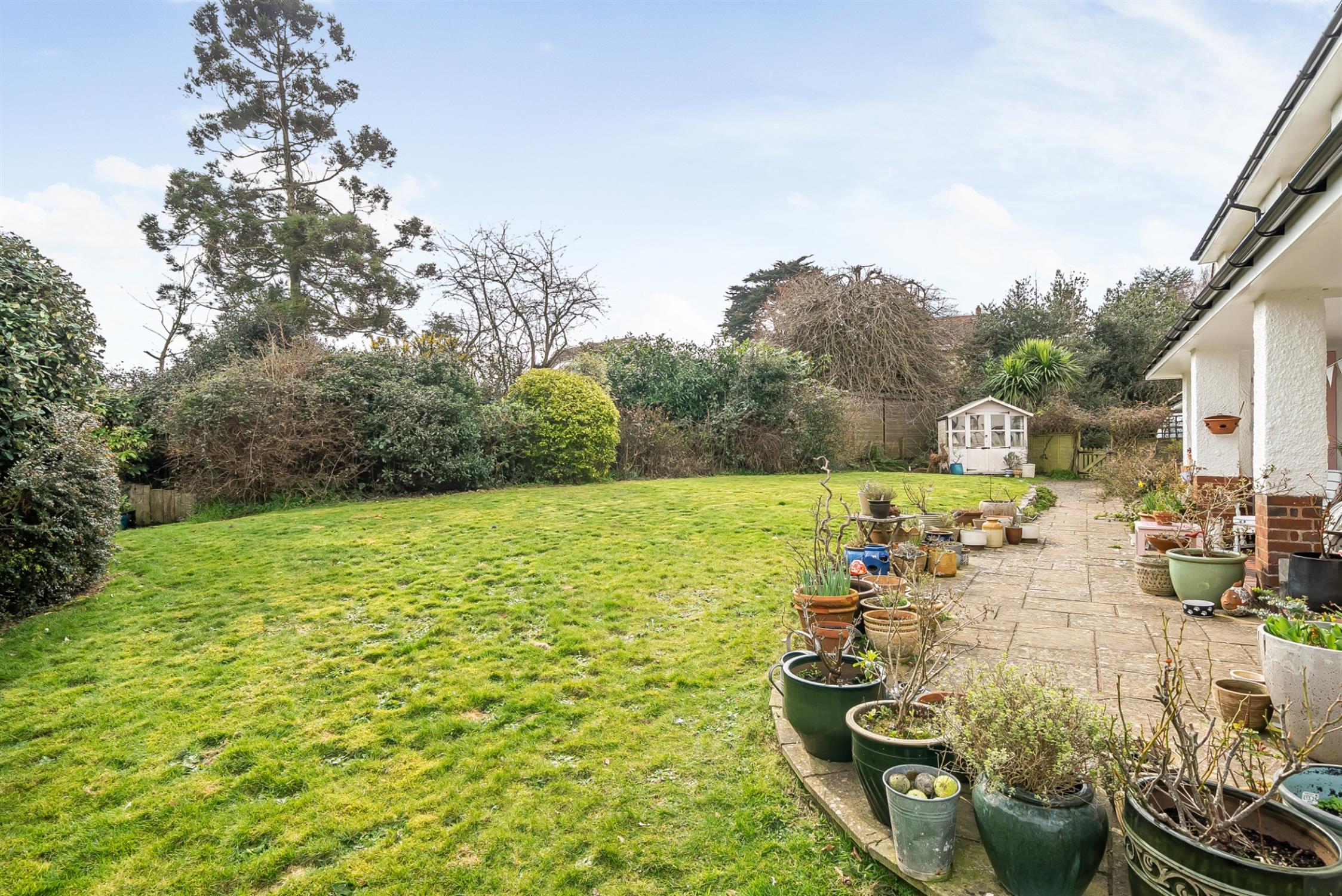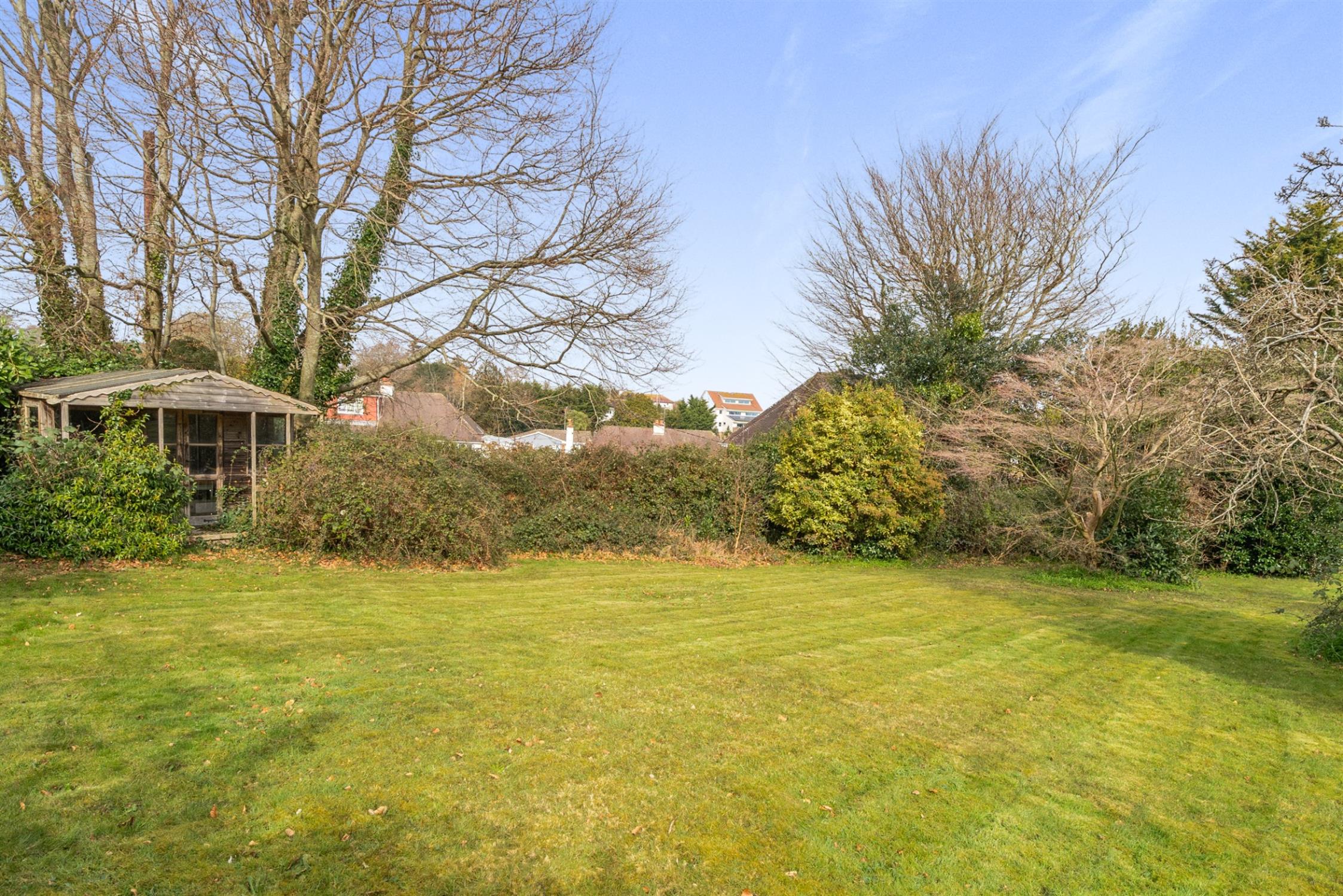 Worth viewing because…The property sits approximately in the middle of a good size plot measuring just over 0.4 acres. To the front, wooden gates open to a gravelled driveway providing parking for several vehicles. Private and well screened, there is a large area of lawn adjacent to the driveway and to the rear a further area of lawn with a Southerly aspect, a timber summer house, green house and attractive veranda providing a covered seating area.