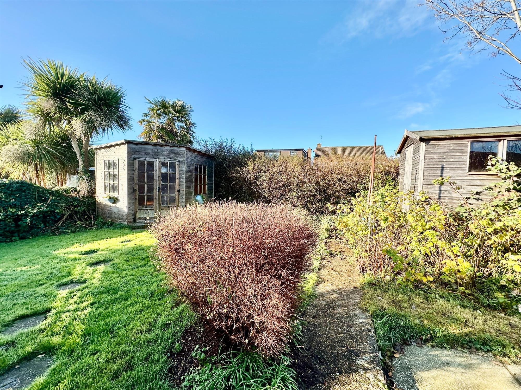 Private rear garden with a timber summerhouse and shed *