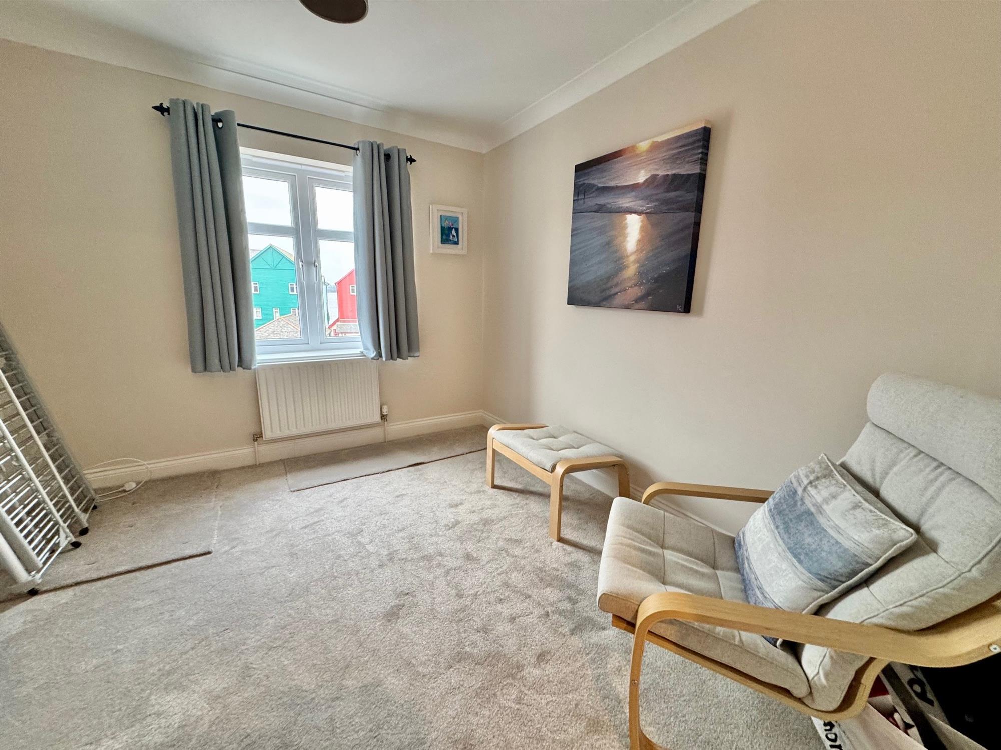 A particularly large bright room with large double glazed bay window to rear overlooking the Marina. Double glazed window to the side with views towards Dawlish Warren. Two radiators. Feature gas fireplace. Coved ceiling. Double glazed door out onto the balcony.