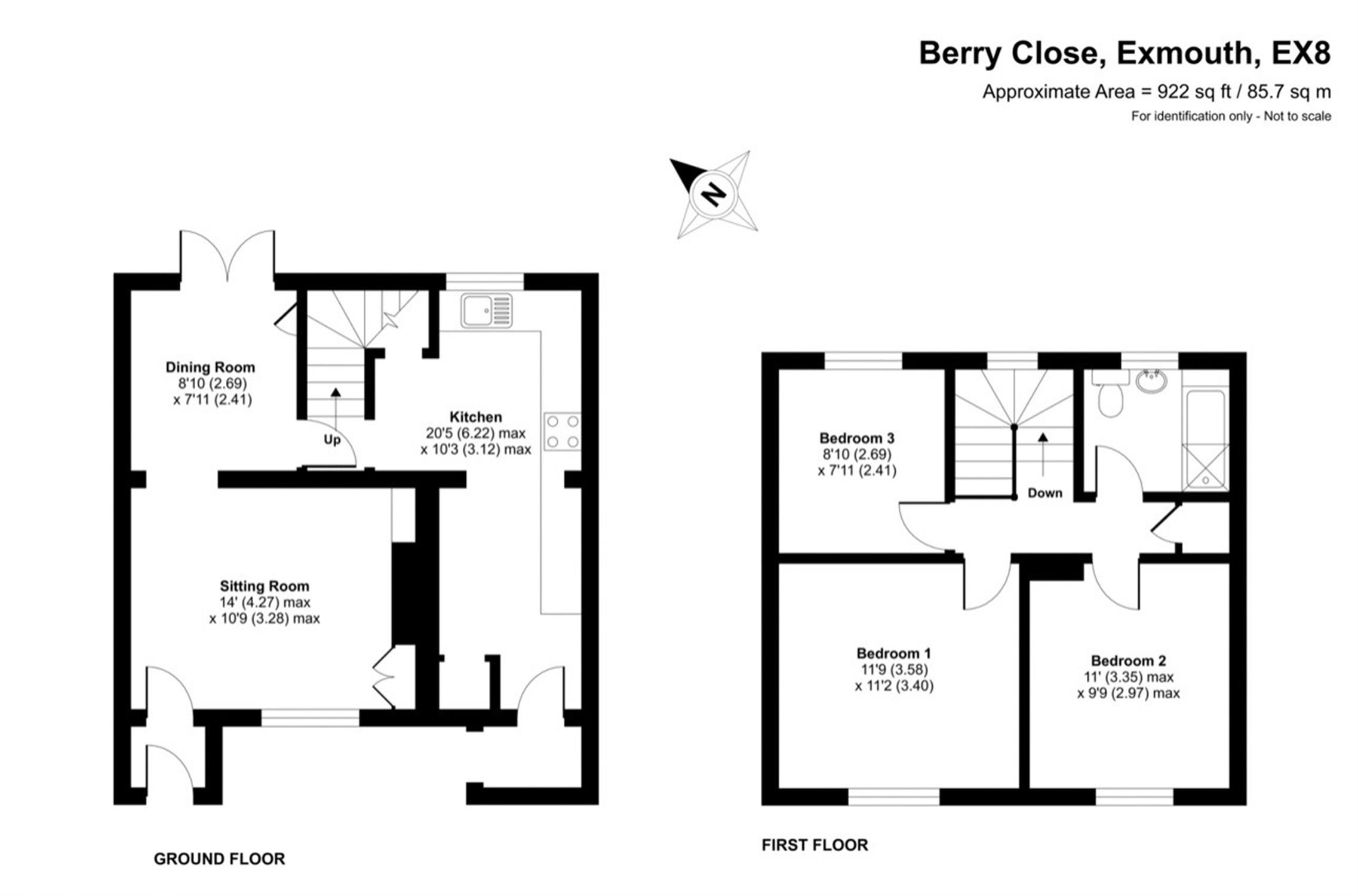 Directions…The property is located just under 2 miles from the town centre. From the town centre proceed along Rolle Street/Rolle Road. At the roundabout, take the first exit onto Salterton Road/B3178. Follow this road for just over a mile, at the second set of traffic lights turn right onto Littleham Road. Then continue straight on at the mini roundabout and turn left onto Midway. Turn right onto Nelson Drive and Berry Close will then be found a short way up on the left-hand side.