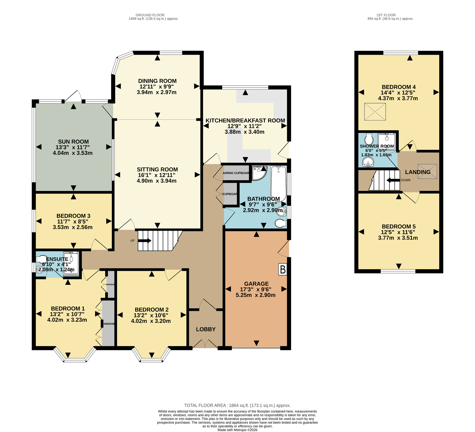 • 5 bedrooms 3 on the ground floor, 2 on the first floor.