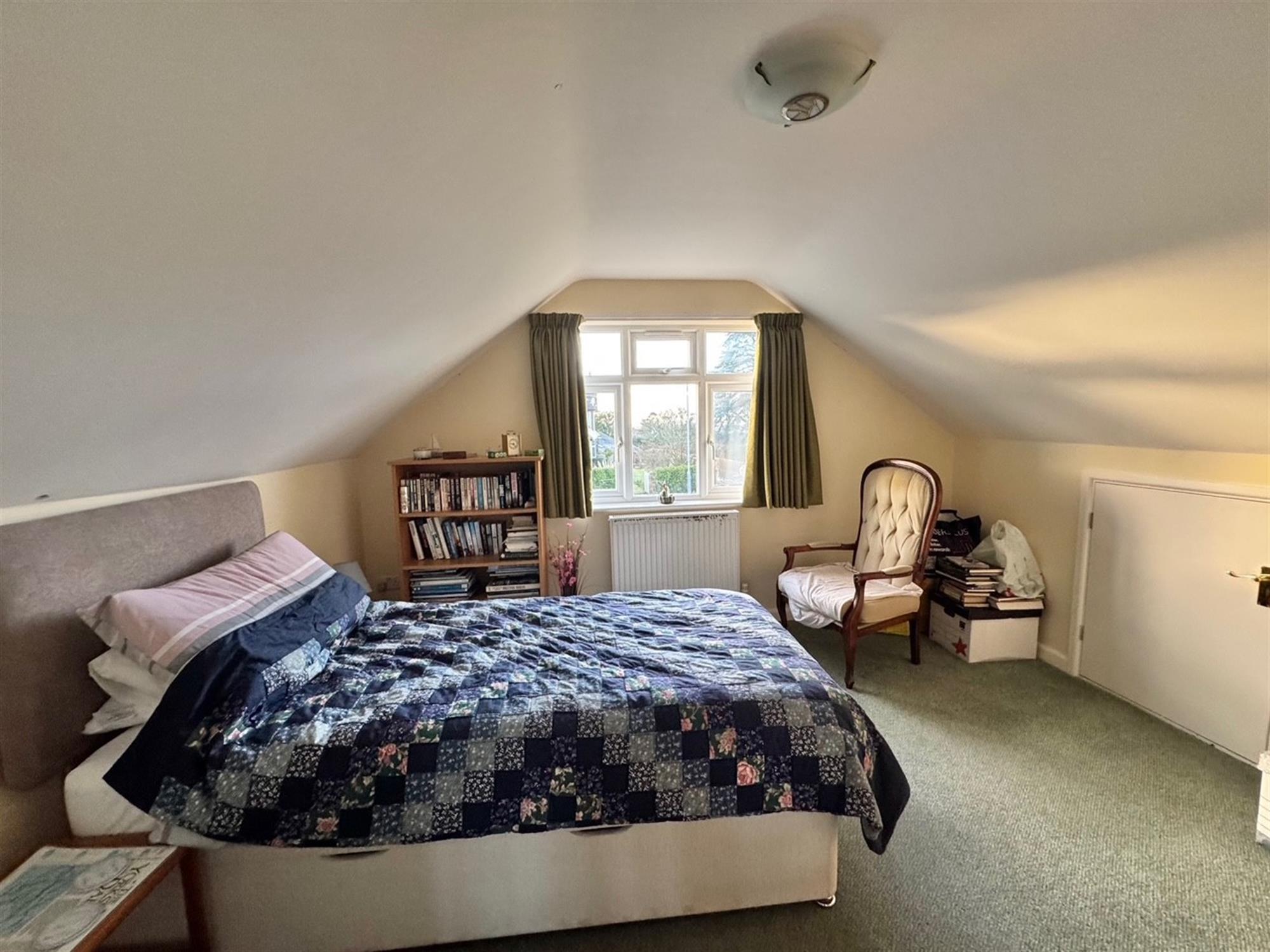 Double glazed window to the rear with views over the gardens and fields beyond. Double glazed velux window to the side. Eaves storage cupboards. Downlighters. Radiator.