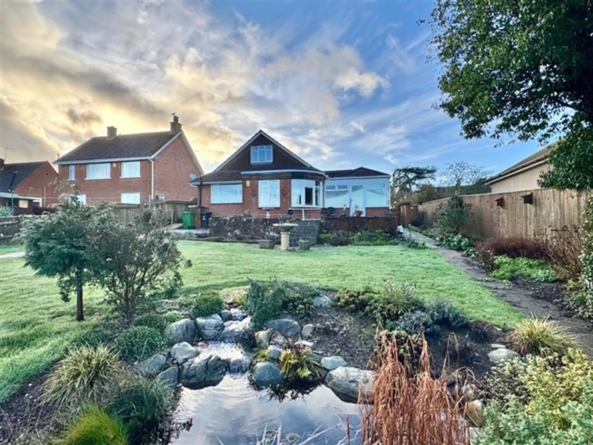 OUTSIDEThe property is approached by its own private driveway with double gates leading onto a resin driveway with parking for 3- 4 cars. Also to the front is a level lawned garden with a mature privot hedge and fence enclosures. Access on either side of the property leads to a 100ft rear garden The garden has a large patio area which in turn leads on to the lawned gardens, ornamental pond, planted beds, timber storage shed, fruit trees and an additional potting shed.