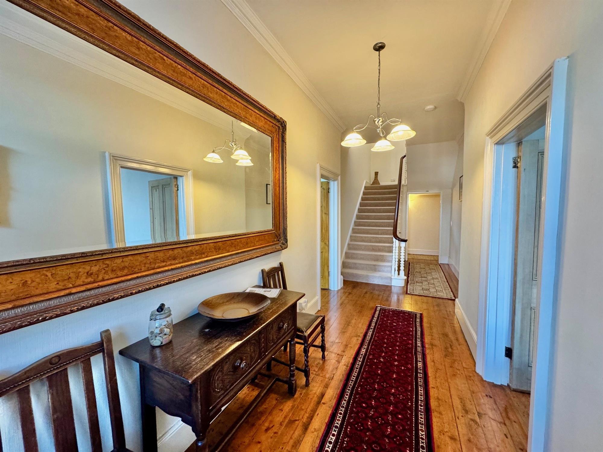 RECEPTION HALLWAY High ceilings with coved ceiling. Strip wood floorboards. Two radiators. Built in under -stairs cupboards. Doors leading off to..