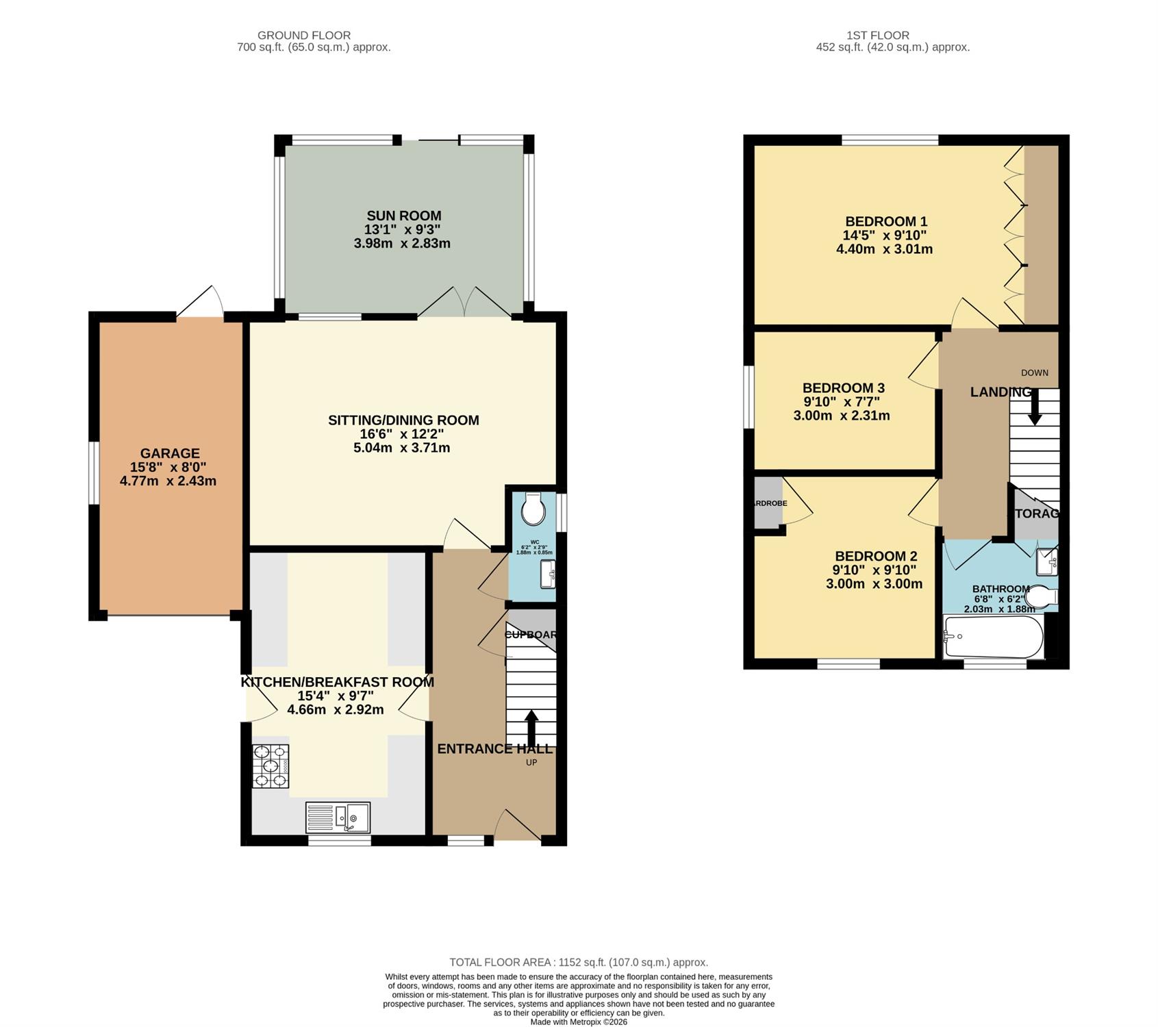• 3 First floor bedrooms - Main bedroom with built-in wardrobes