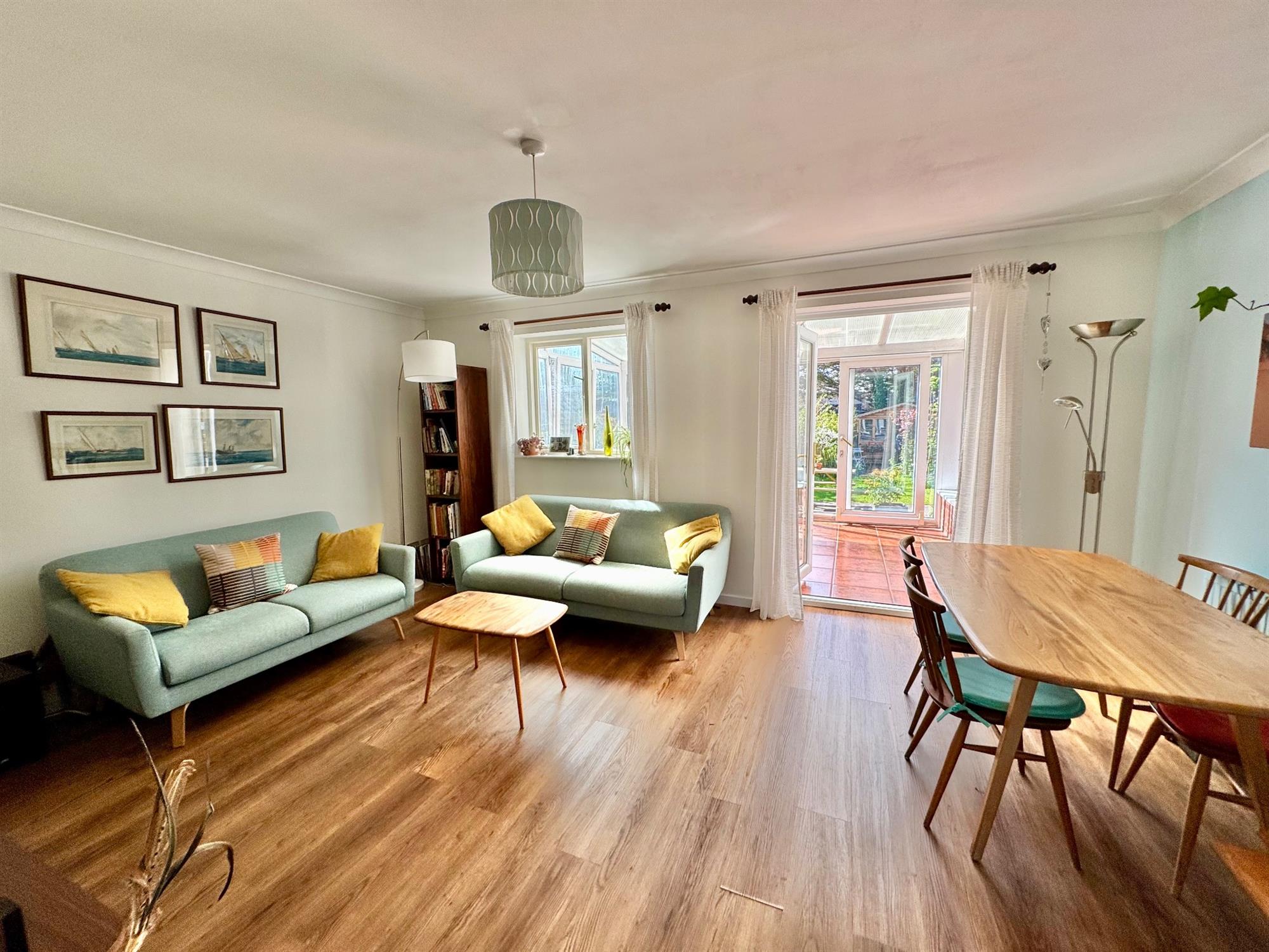 SITTING / DINING ROOM 16' 6" (5.03m) x 12' 2" (3.71m): Double glazed window to rear and double glazed double doors leading out into the Sun Room. Laminate wood flooring. Coved ceiling. Radiator.