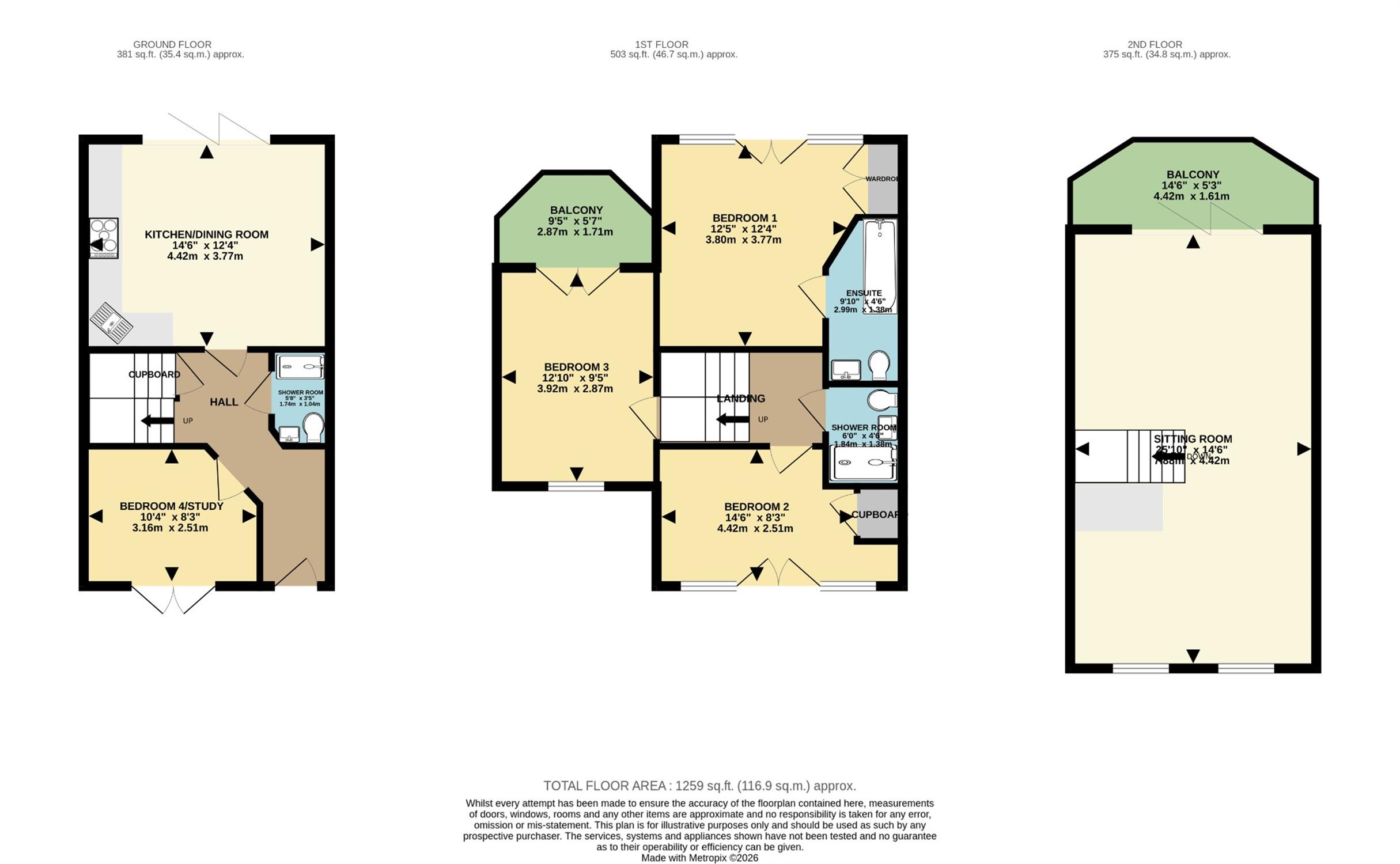 • Balconies off the sitting room and bedroom 3, plus Juliet balcony to the master bedroom