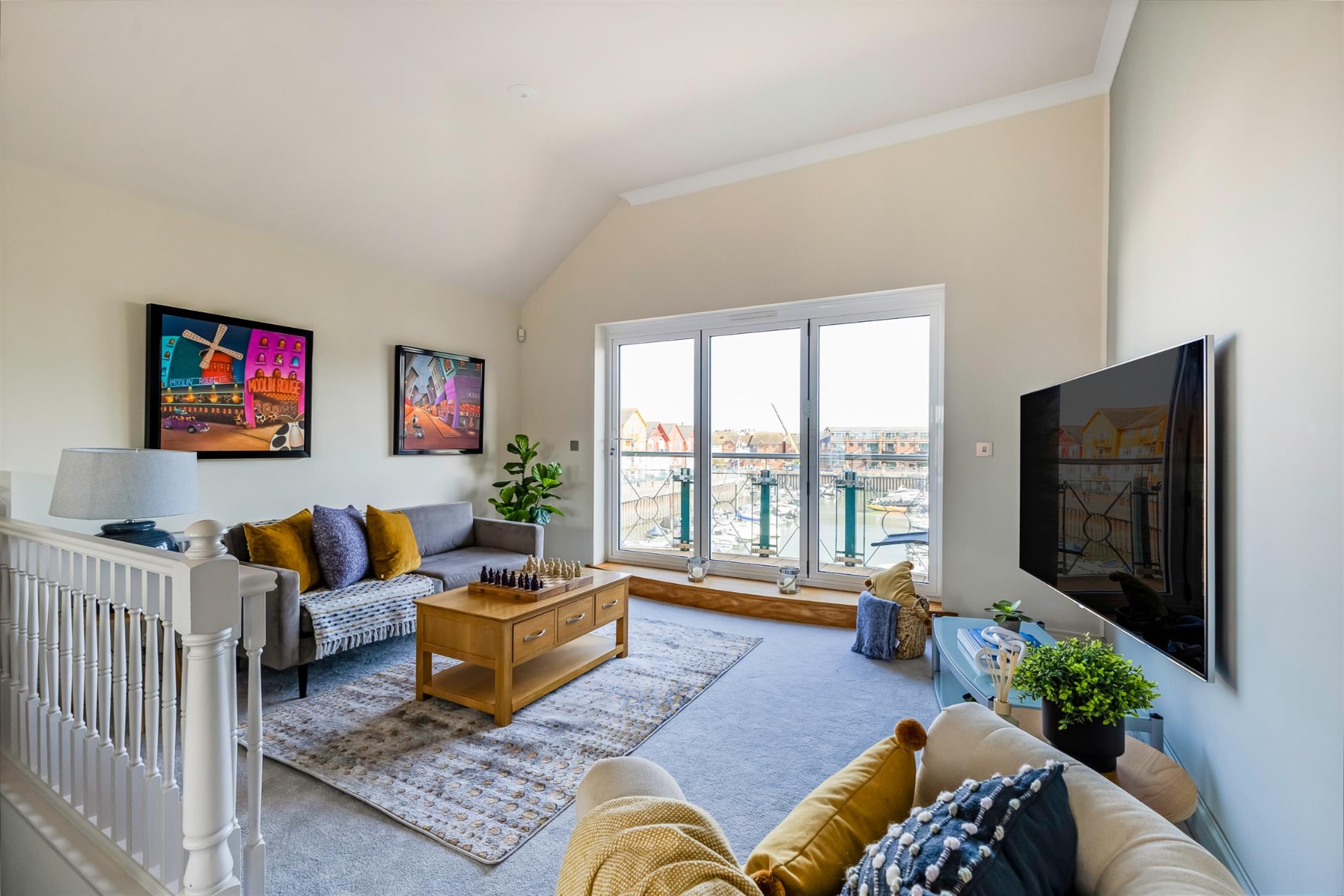• Impressive 25ft dual-aspect top-floor sitting room with marina and estuary views