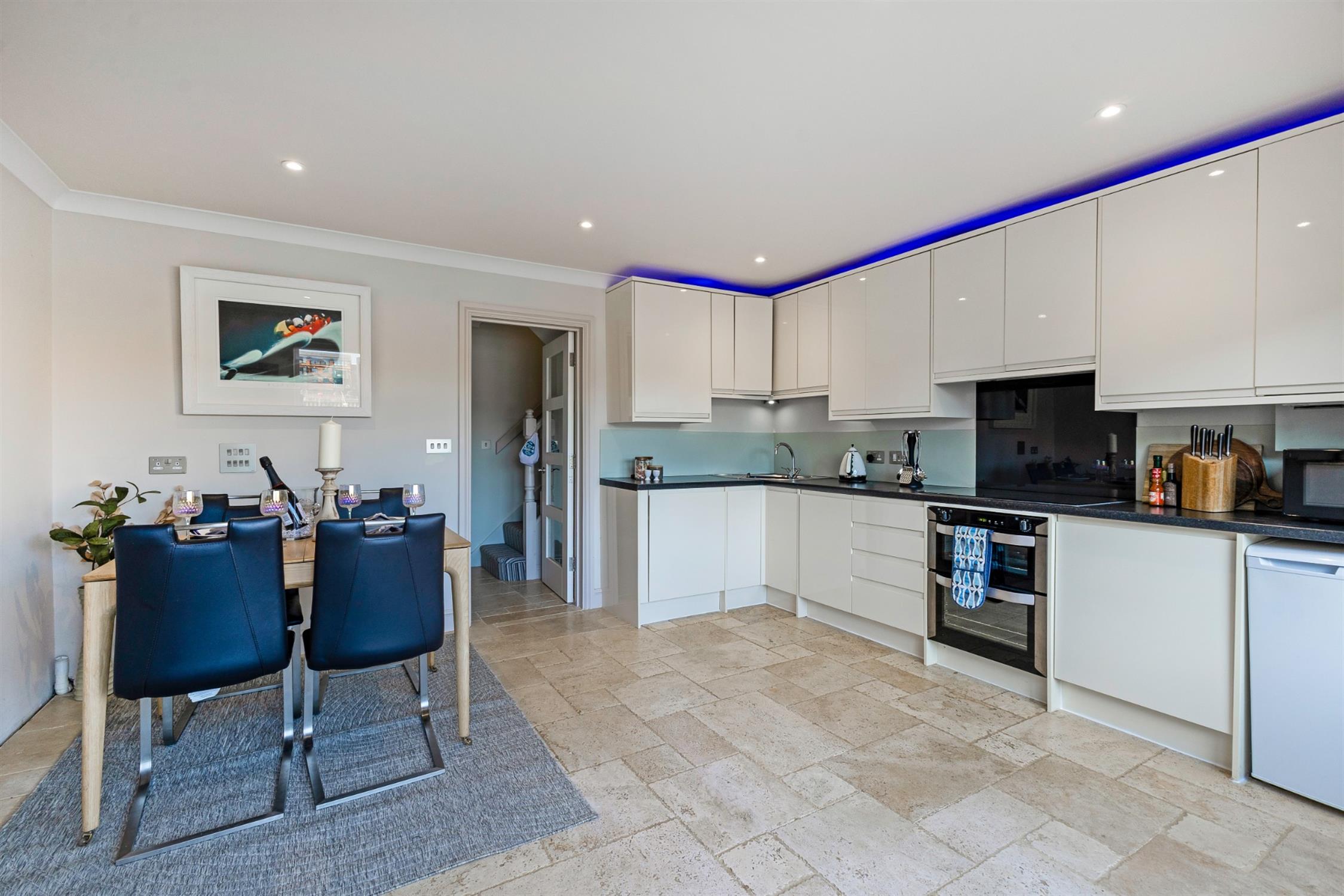 • Modern kitchen/dining room with bi-fold doors opening onto the rear terrace