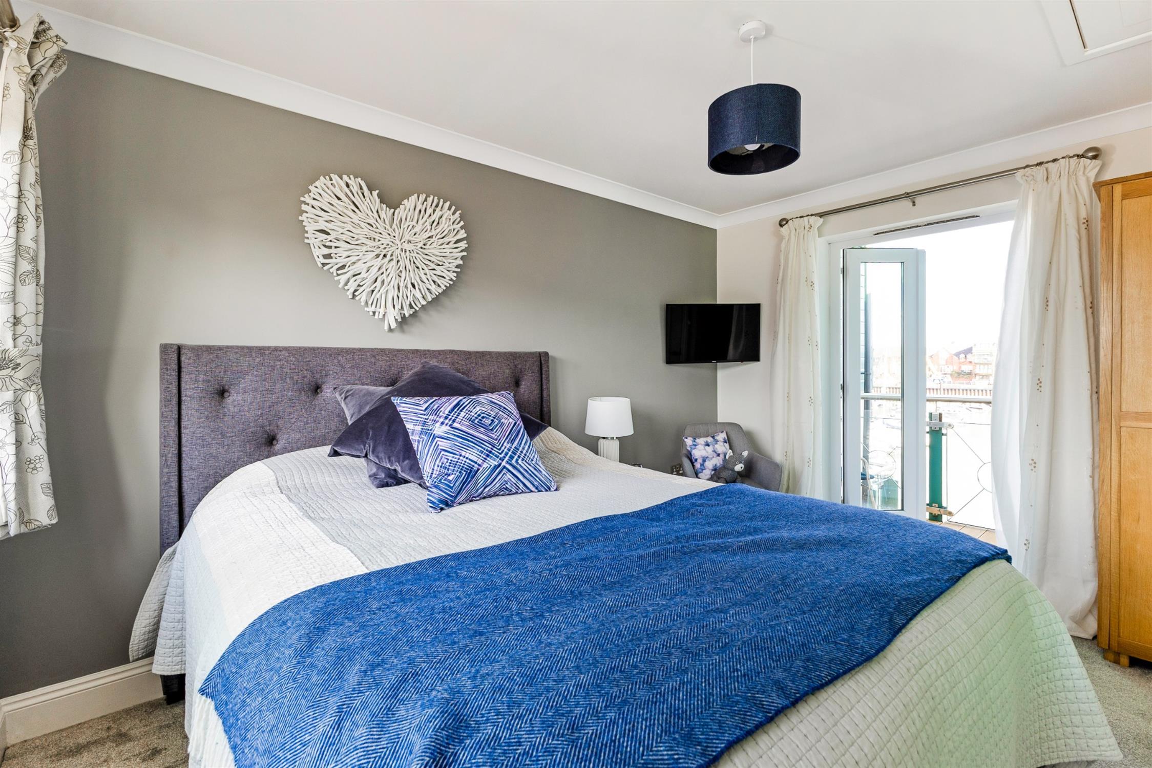 Outside, the rear garden has been attractively landscaped with limestone tiling and raised planted beds, with the added benefit of direct gated access onto the marina walkway. To the front, a private driveway provides parking for two vehicles and access to a single garage. A courtyard garden offers additional outdoor space, complete with a hot and cold shower - perfect after a day on the water.