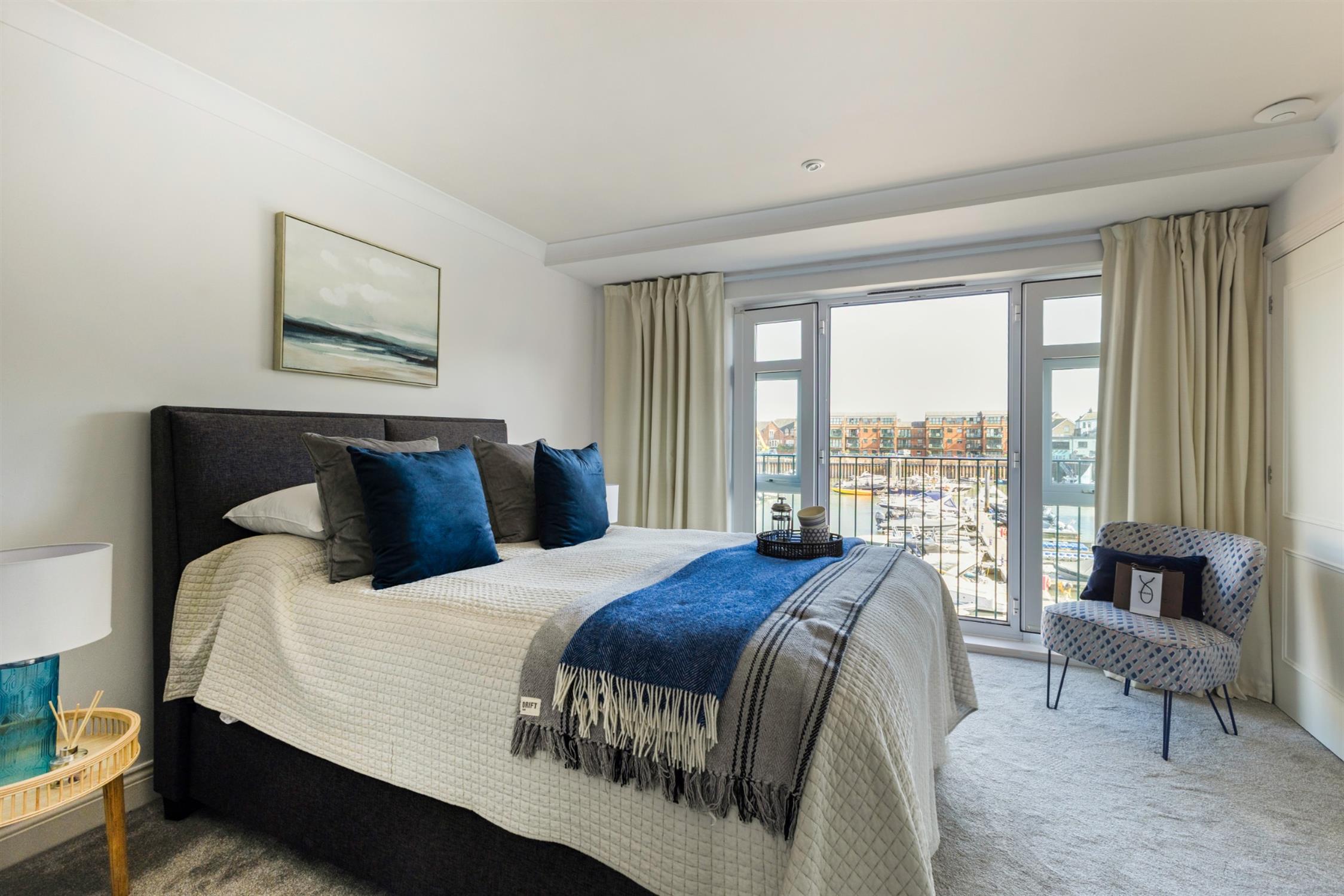 BEDROOM 112' 5" (3.78m) x 12' 4" (3.76m): Double glazed double doors with double glazed side windows with a Juliet balcony. Views over the marina. Built -in double wardrobe. Ceiling speakers. Downlighters. Coved ceiling. Radiator. Door to...