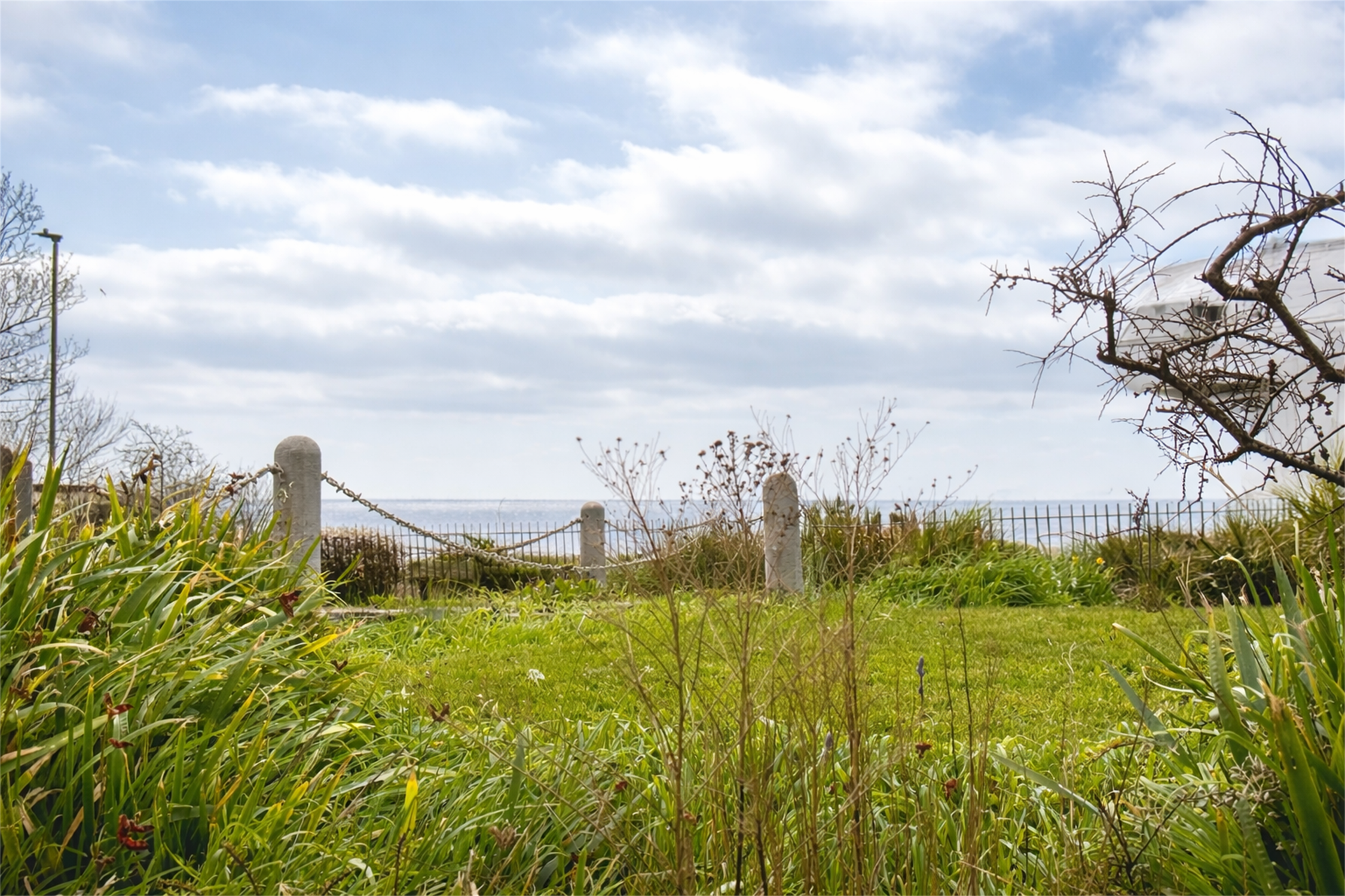 LAWNED FRONT GARDEN with sea views