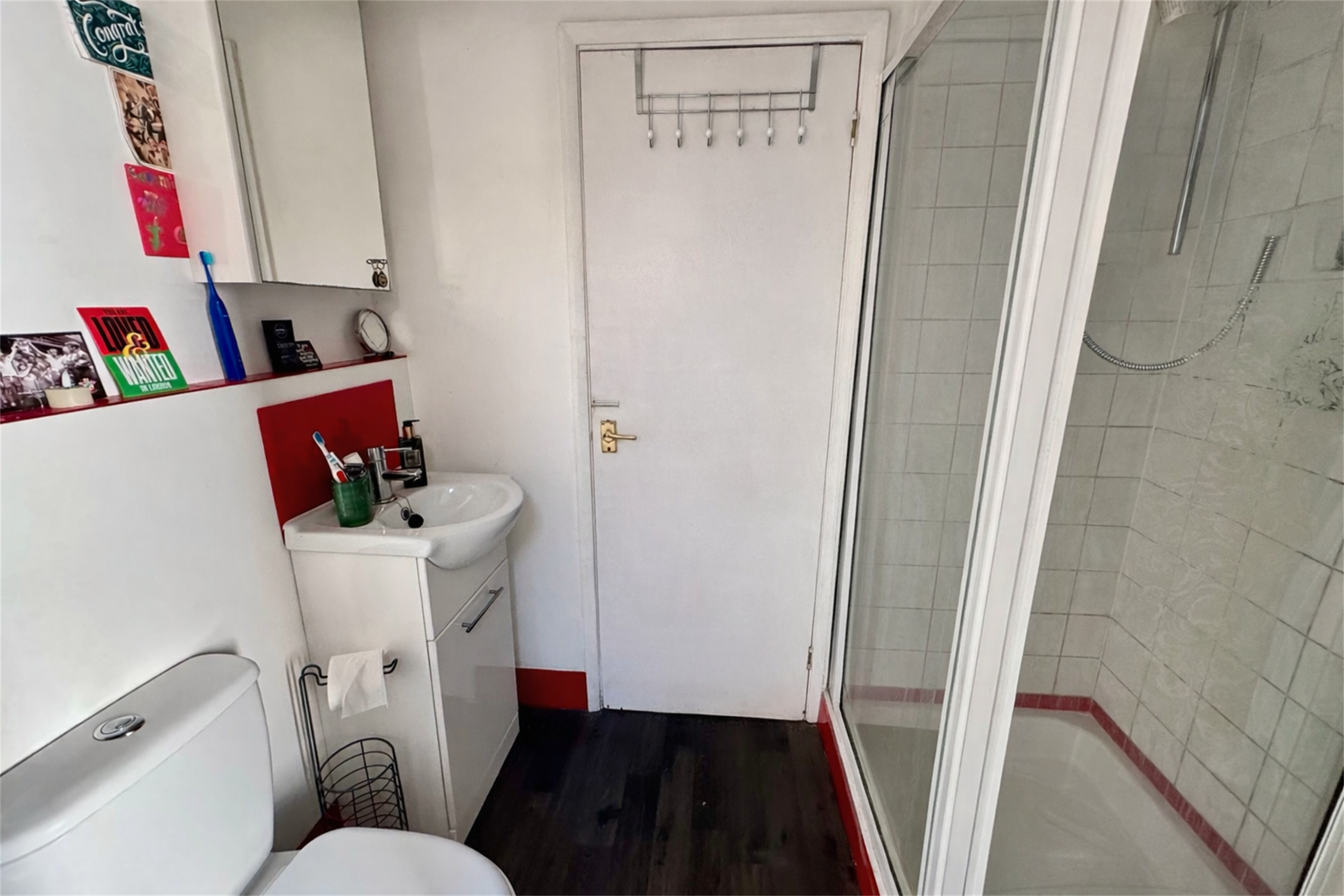 SHOWER ROOM6' 10" (2.08m) x 4' 5" (1.35m): Corner shower cubicle in full tiled surround with built-in electric shower. Low level W.C. Wash hand basin with mixer tap and cupboard under. Mirrored medicine cabinet with downlighter. Extractor fan. Door to...
