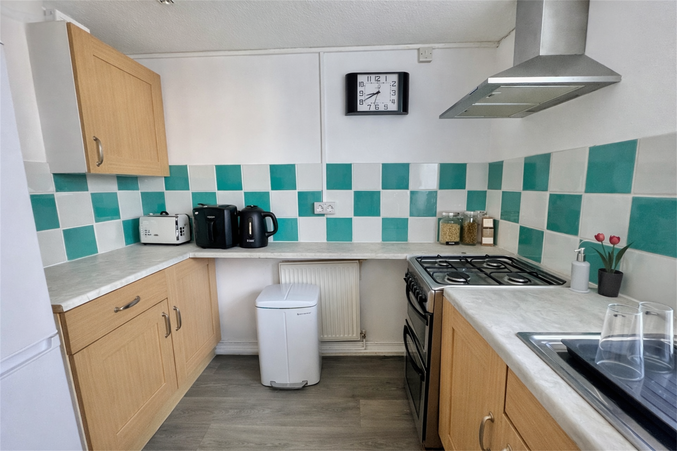 KITCHEN 8' 6" (2.59m) x 6' 3" (1.91m): The kitchen has a stainless steel sink with drainer. Space for cooker. Roll edge worktop surface with cupboards and single drawer under. Space for fridge freezer. Matching wall mounted cupboard. Window to the front. Radiator.