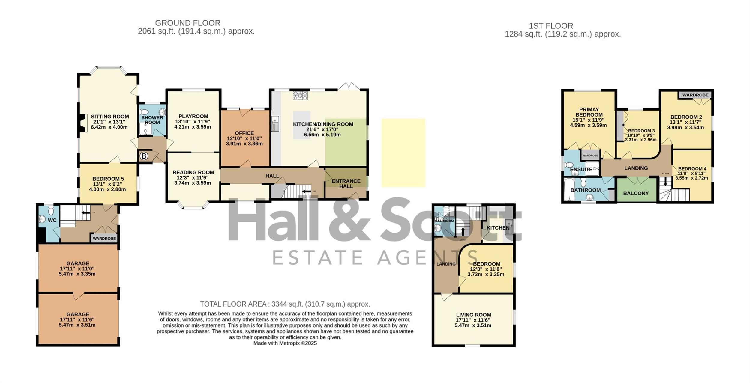 The main house boasts a beautifully redesigned hallway leading to a spacious kitchen/dining room, office, reading room, playroom, shower room, sitting room and a further room that can serve as a fifth bedroom or as another reception room through which to access the annexe. The kitchen benefits from underfloor heating, as do the ground floor bathroom and ensuite bathroom.