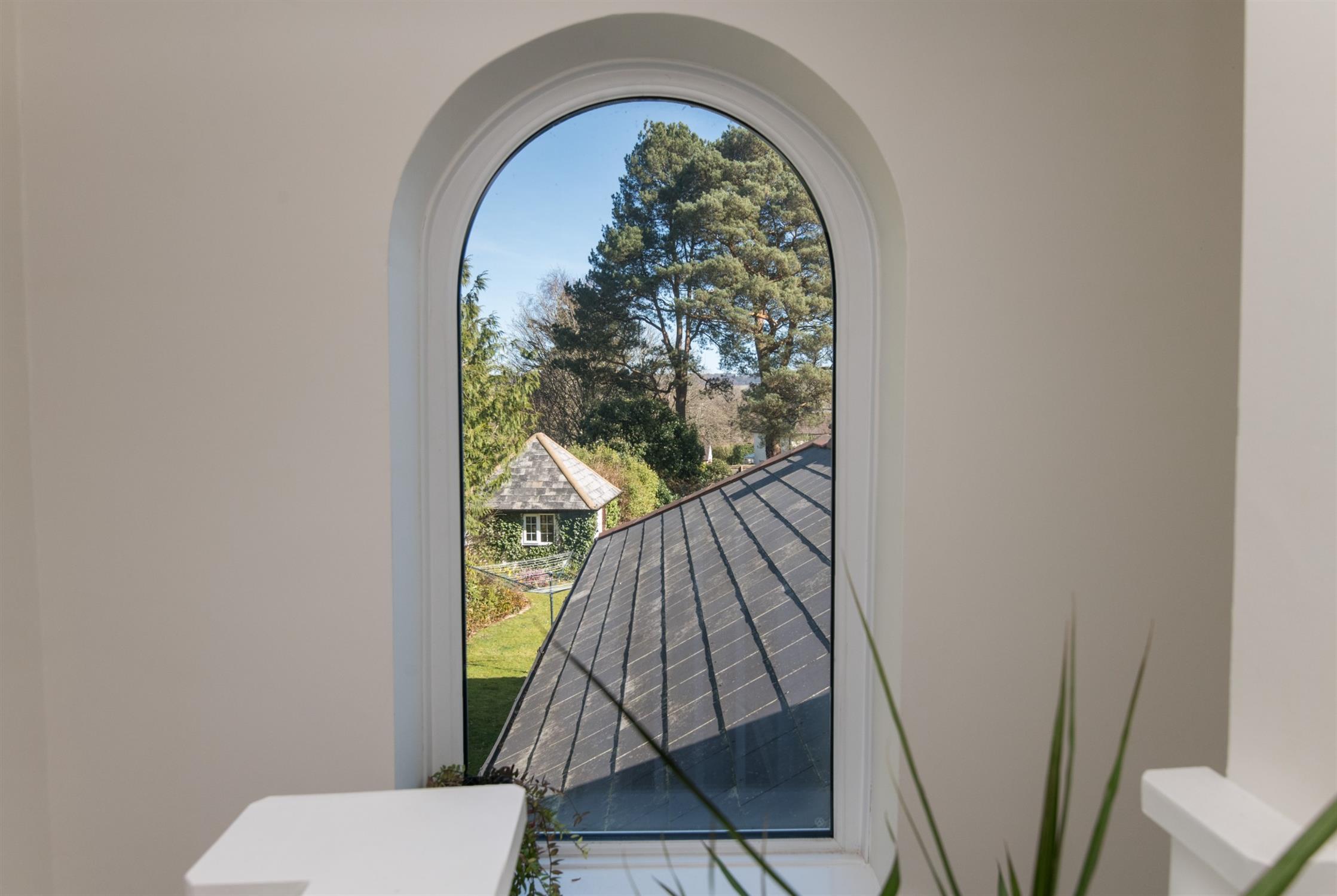 To the rear, a large, level garden offers a peaceful retreat, perfectly secluded and bathed in sunlight. A spacious patio provides the perfect spot for outdoor dining or entertaining, all while enjoying the breathtaking distant views over East Hill. There is also a summer house which has double-glazed windows and power, ideal for conversion into a home office.