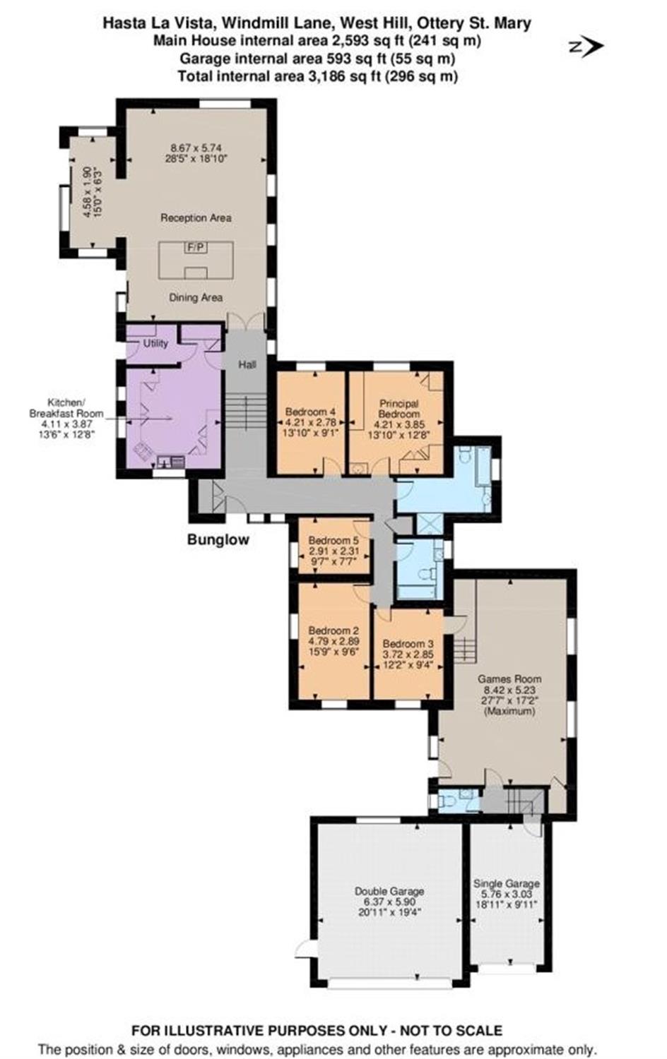 The spacious, versatile accommodation comprises: entrance hallway, kitchen/breakfast room with a range of matching wall and base units, integrated dishwasher, built-in oven and hob with extractor hood over and a utility room. The living room offers an attractive aspect over the gardens and paddock beyond with an attractive fireplace and archway leading to the dining room. There are five bedrooms and two bathrooms; one of the bathrooms has a separate shower. There is a large game's room with pitched ceiling, mezzanine floor and a wood-burning stove with a raised hearth, wood surround and mantel over. This space would make a great Granny Annexe subject to the necessary planning consents, and it also has a cloakroom.
