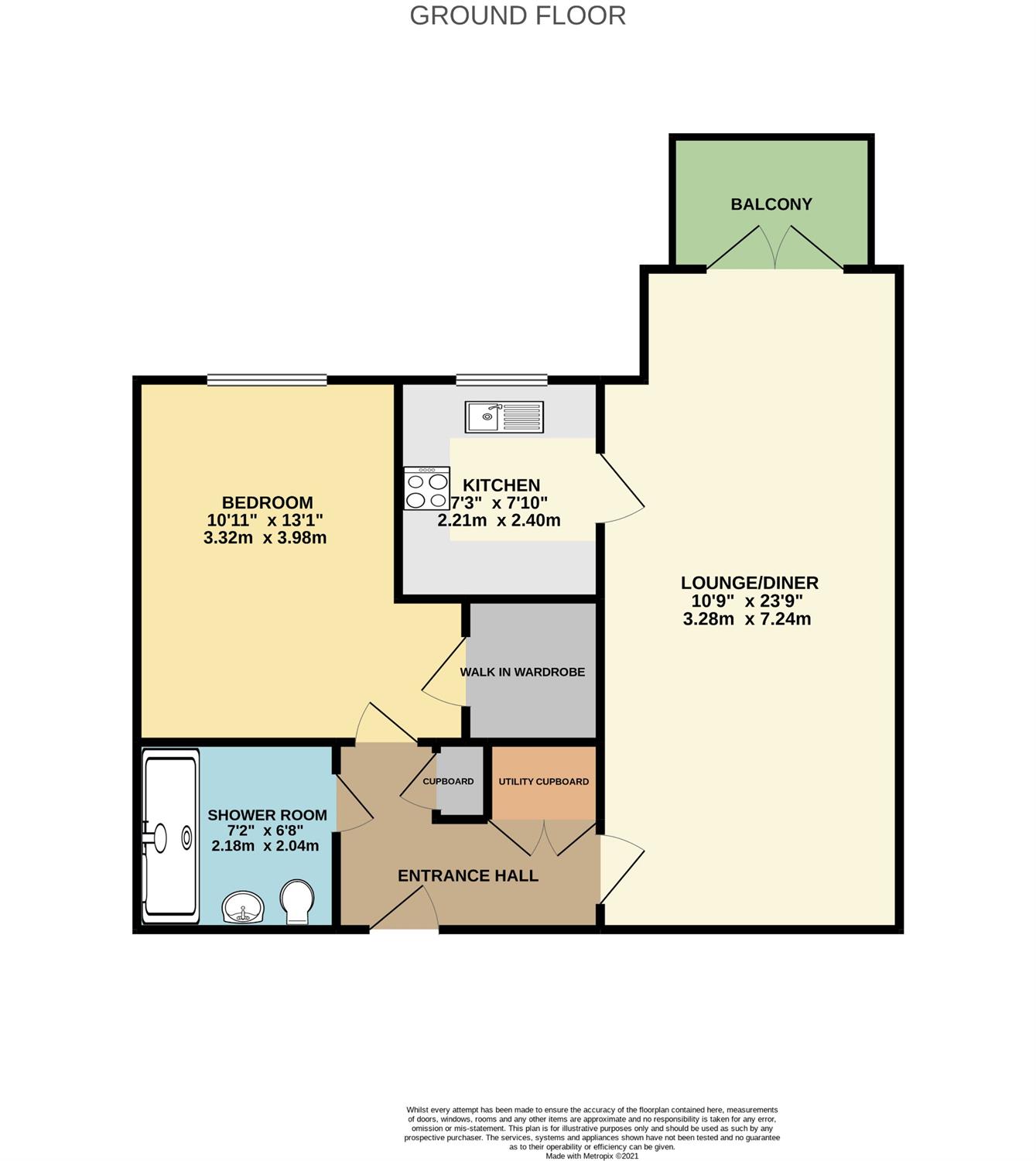The accommodation comprises; entrance hallway, shower room, large lounge/dining room with French doors onto the balcony, fitted kitchen with a range of wall and base units, built in Bosch oven and hob, built in Bosch fridge/freezer, double bedroom with walk in wardrobe and a utility cupboard with washing machine. The property also has electric heaters. This property has the benefit of its own balcony which looks towards the river otter.
