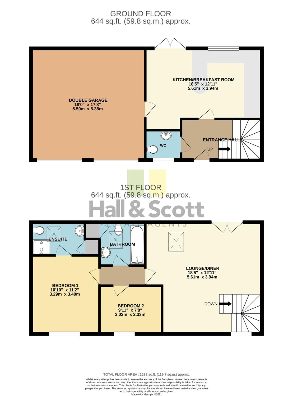 To the ground floor is an entrance hall, cloakroom and large kitchen/breakfast room with double doors leading out to the garden. From the hallway there are stairs leading to the first floor where there is a lounge/diner with Juliet balcony, master bedroom with ensuite, second bedroom and bathroom.