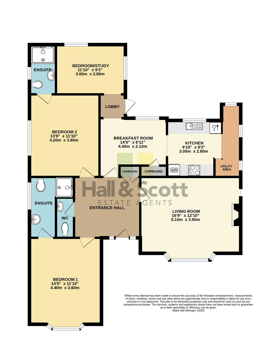 Welcoming you upon entry is a spacious reception hall, setting the tone for the residence. A convenient cloakroom adds practicality to the layout. The large living room, featuring a bay window, offers not only ample natural light but also stunning views over Salcombe Hill, adding a picturesque touch to the living space. The existing layout includes two generously sized double bedrooms, each equipped with ensuite shower rooms. Additionally, there is a flexible study/bedroom that could be transformed into a private area with some necessary building work. The kitchen has a range of cupboards, 1 1/2 sink, dishwasher, under-counter fridge, oven, hob, separate breakfast room and a utility area with plumbing for a washing machine. The property has uPVC double-glazed windows and gas central heating.