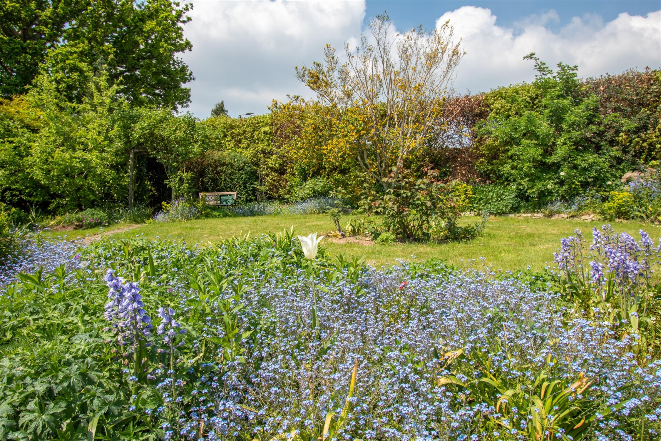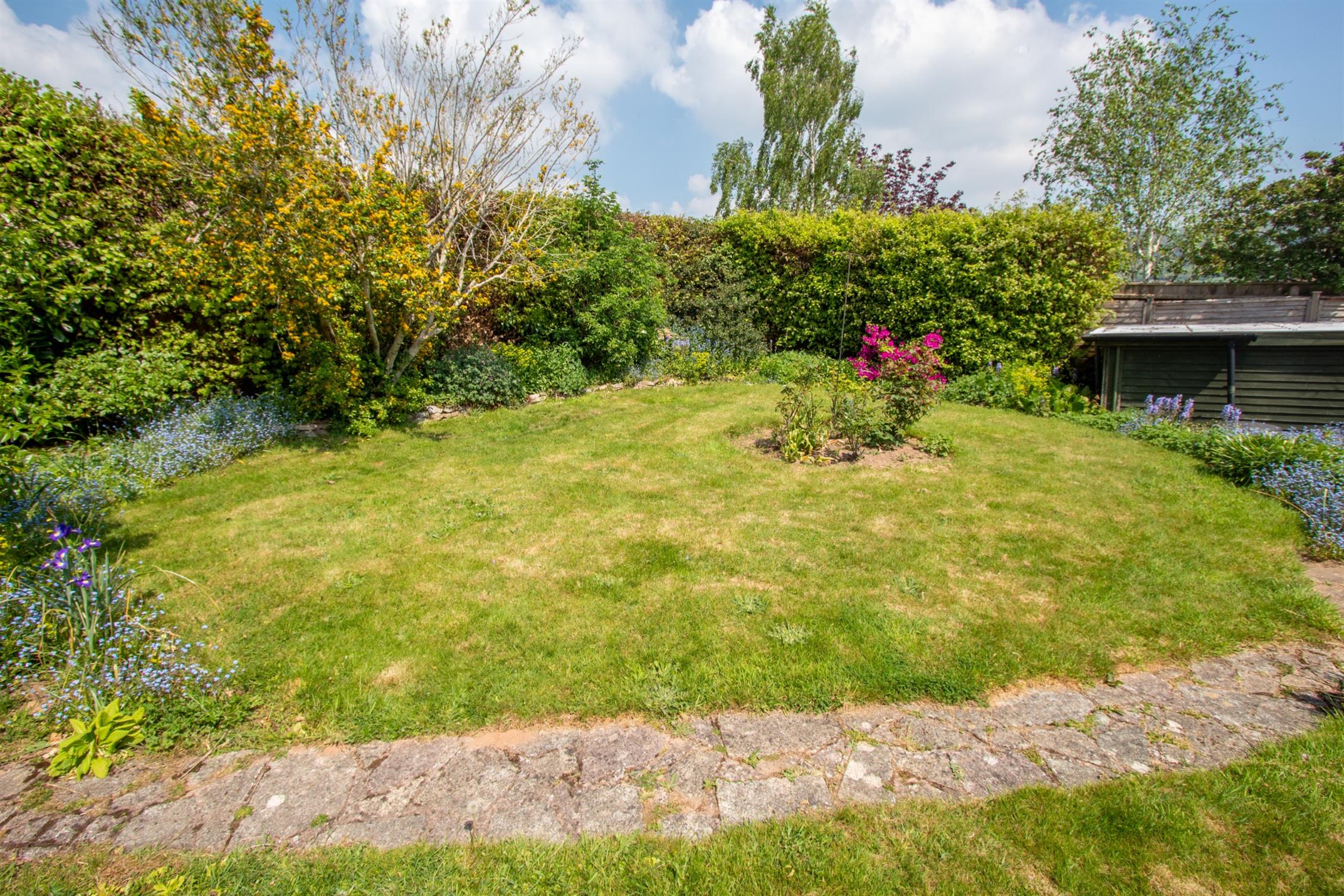 The rear garden is a haven of natural beauty, featuring a patio area and steps leading to a flourishing main garden adorned with vibrant flowers. The space is thoughtfully secluded and securely fenced, providing a private outdoor sanctuary. Completing the ensemble are practical additions like a greenhouse and shed, enhancing the functionality of this idyllic outdoor space.