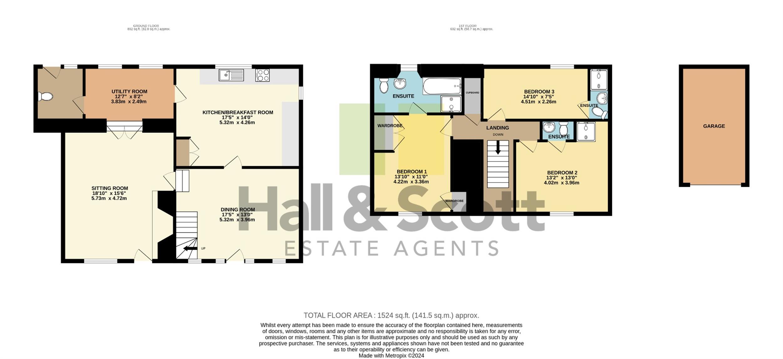 The accommodation comprises; a dining hall with tiled flooring and a staircase rising to the first floor, a kitchen/breakfast room fitted with a range of wall and base units and also with tiled flooring. There is a rear lobby/office with tiled flooring and a door into the cloakroom. From the dining hall there are steps into the sitting room which is a lovely room with an ornamental Inglenook fireplace and LPG gas fire. On the first floor there are 3 bedrooms each with ensuite facilities.