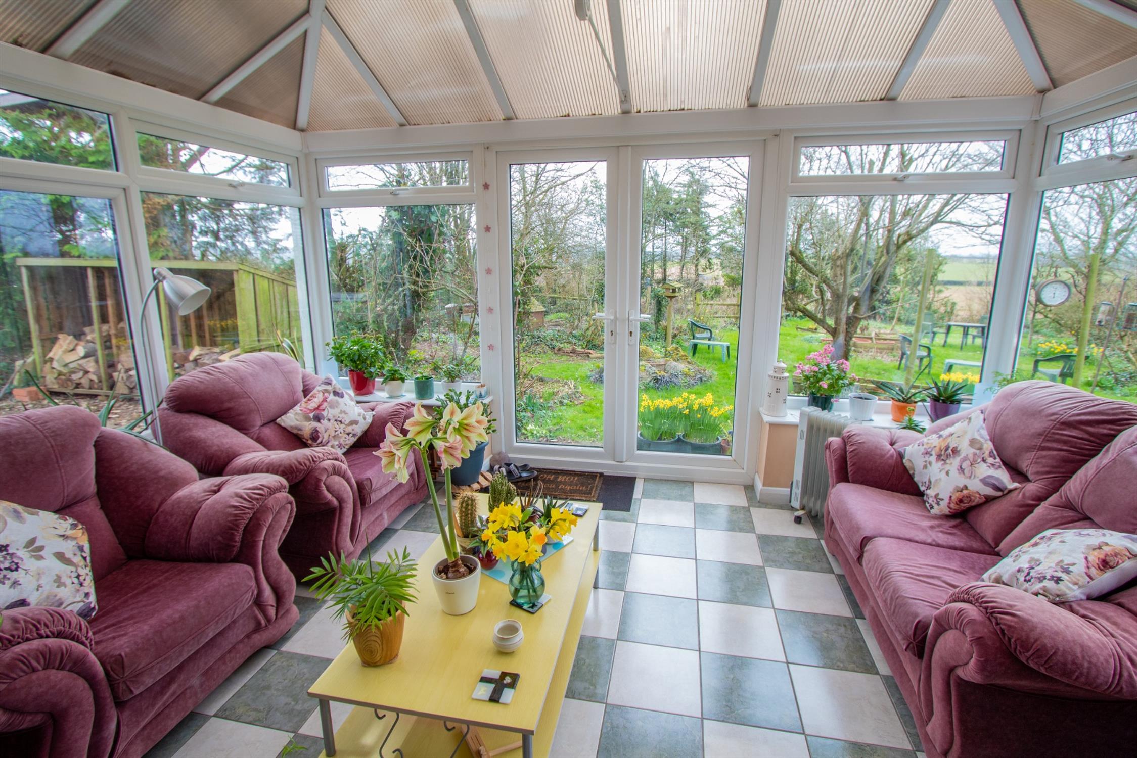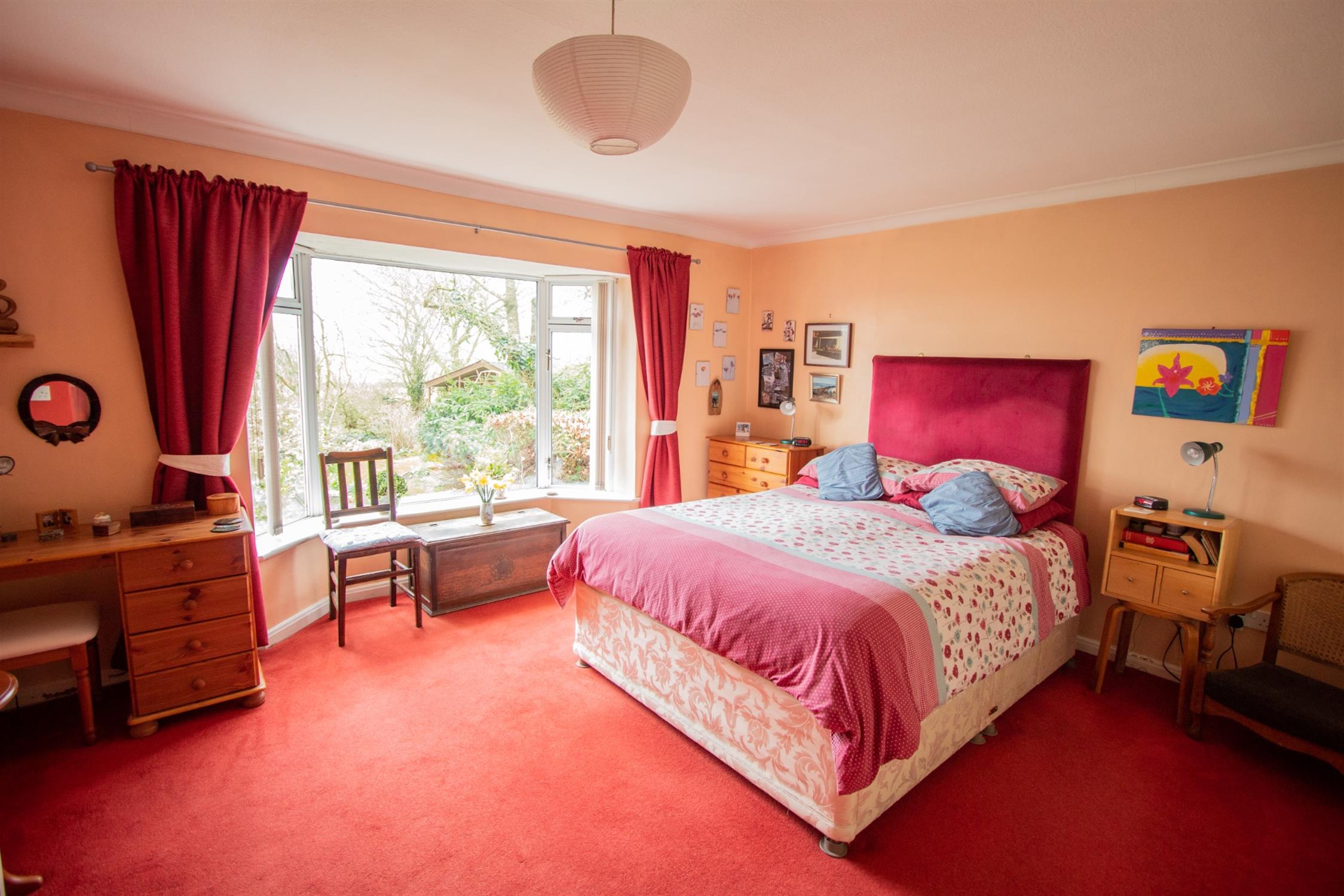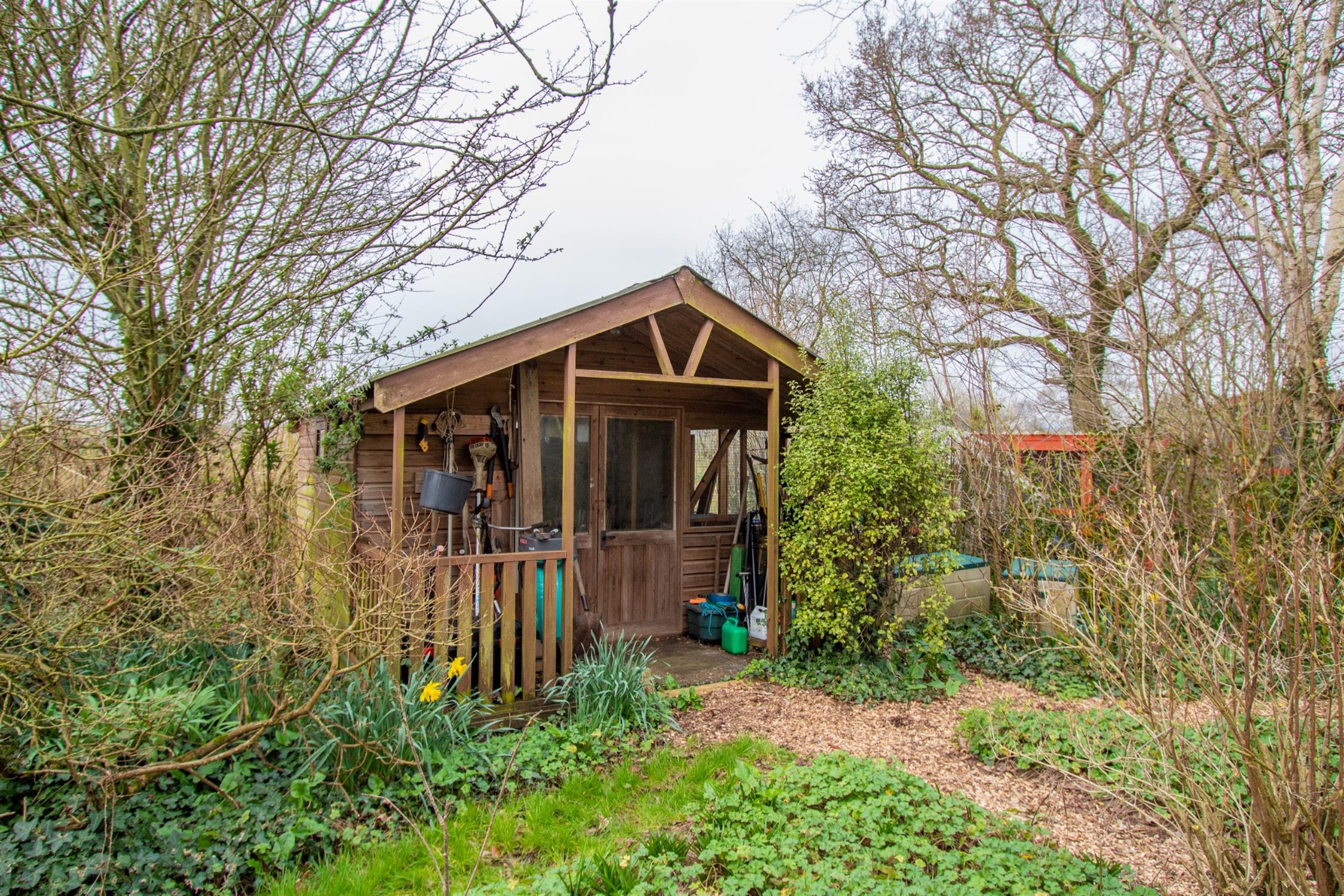 OutsideThe property is set within large, well-maintained gardens, accessed via a five-bar gate and a driveway that leads down to the house. It offers ample parking, two detached garages, and a caravan port. The front garden is mainly laid to lawn with a variety of shrubs, while side access leads to a generous rear garden.