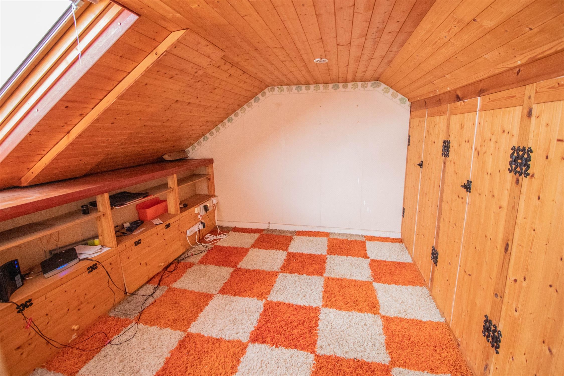 The accommodation comprises: entrance hallway, lounge with dual aspect, kitchen with a range of wall and base units, gas fired AGA, conservatory offering a lovely aspect of the garden, two bedrooms and a bathroom. From the hallway is a staircase rising to two useful attic spaces which have been laid with carpet and have Velux windows.