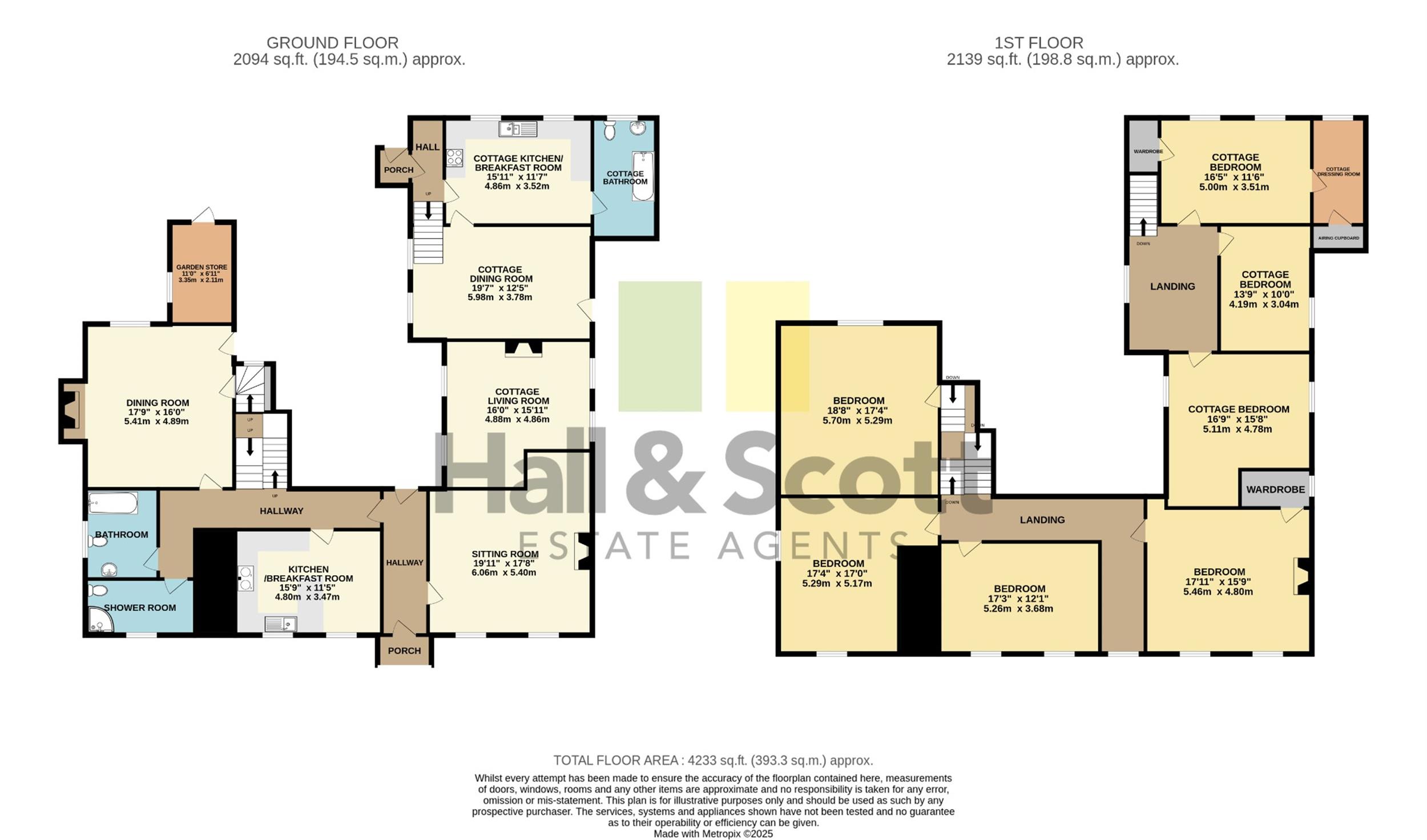There is a driveway to the side offering ample parking and which leads to the rear courtyard where there are 3 stables and 2 timber garages. The gardens extend to the front and side with lawns and beds, well-stocked with plants and shrubs plus a patio area. The cottage has its own fenced-off garden which has a timber-decked patio and lawned garden, well stocked with plants and shrubs.