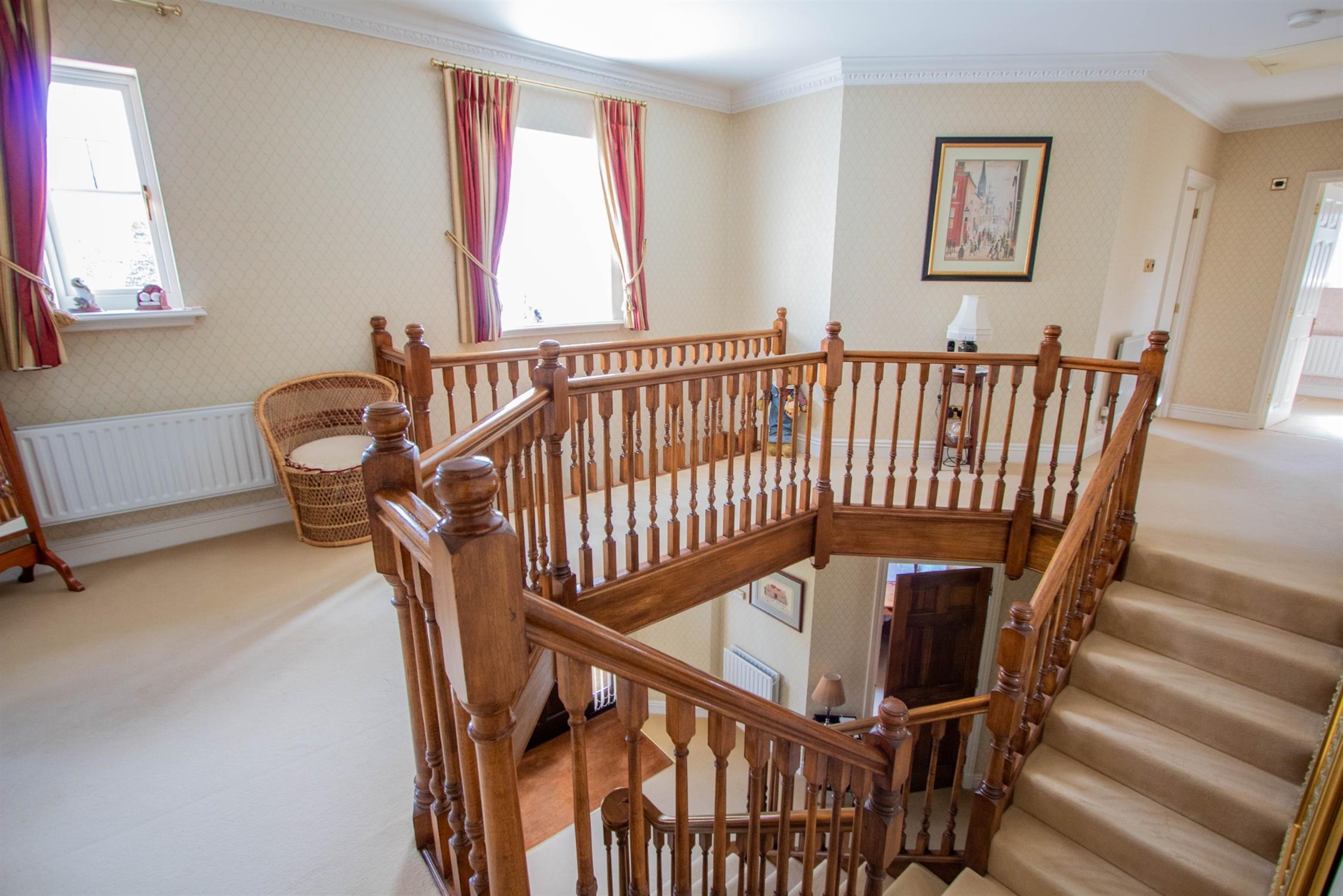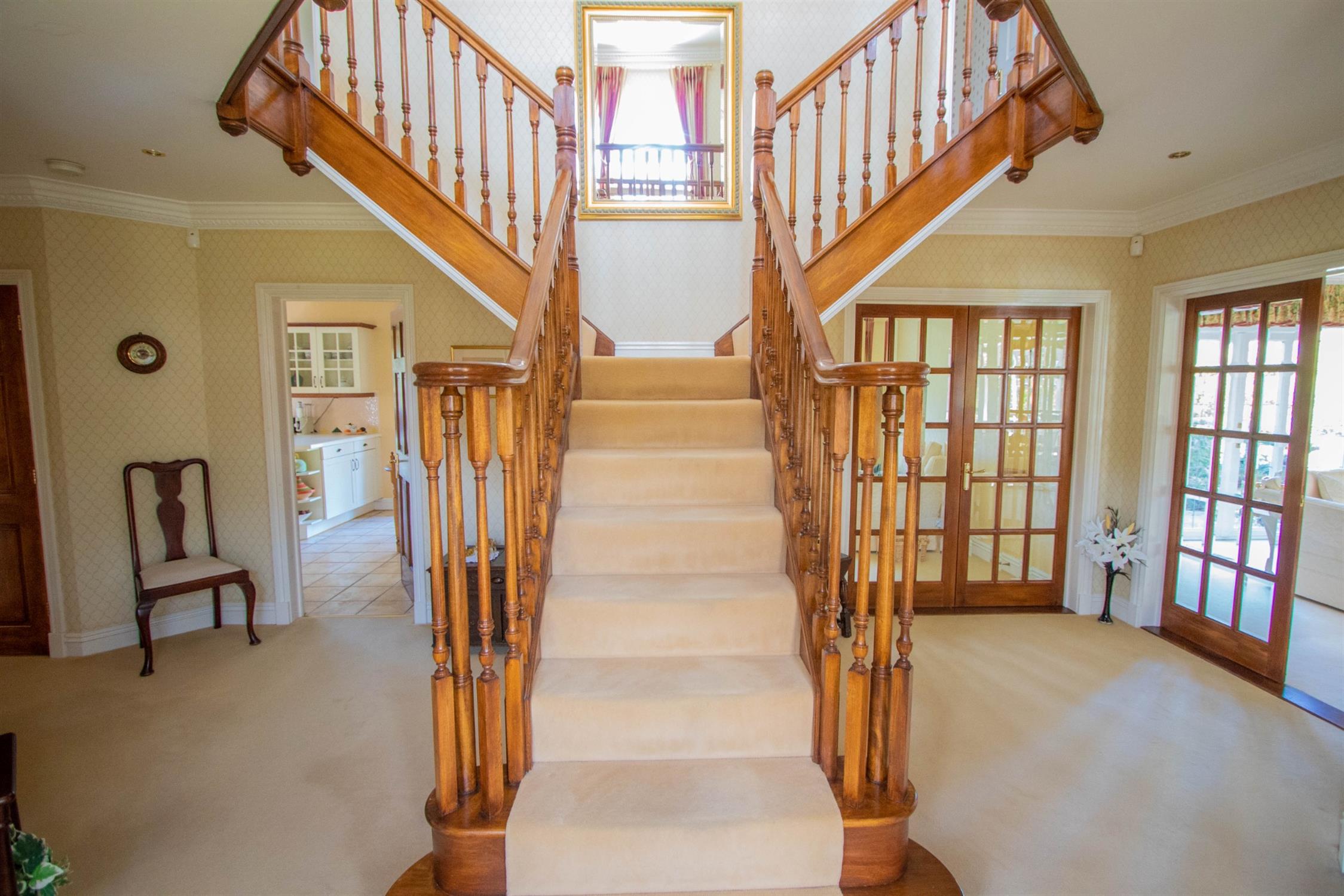 The spacious accommodation, which has been in the same ownership since new, comprises: entrance hallway with grand staircase rising to the first floor, cloakroom, attractive living room with inglenook style fireplace, bay window and French doors into the garden and a family room also with French doors into the garden. There is a study, separate dining room and a kitchen/breakfast room fitted with a range of wall and base units, integrated dishwasher, worktop surfaces, drawer space, tiled floors and a utility room.