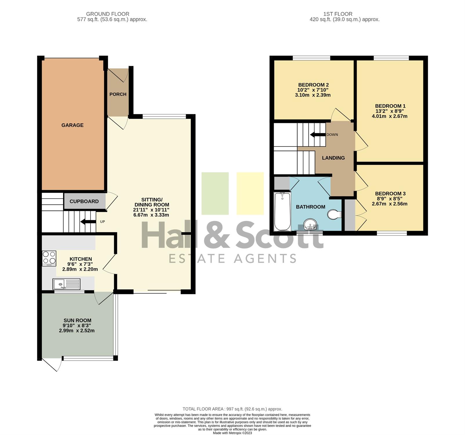 Deceptively large three bedroom, semi-detached property with kitchen, large sitting/dining room, sun room, family bathroom, driveway, garage and gardens.