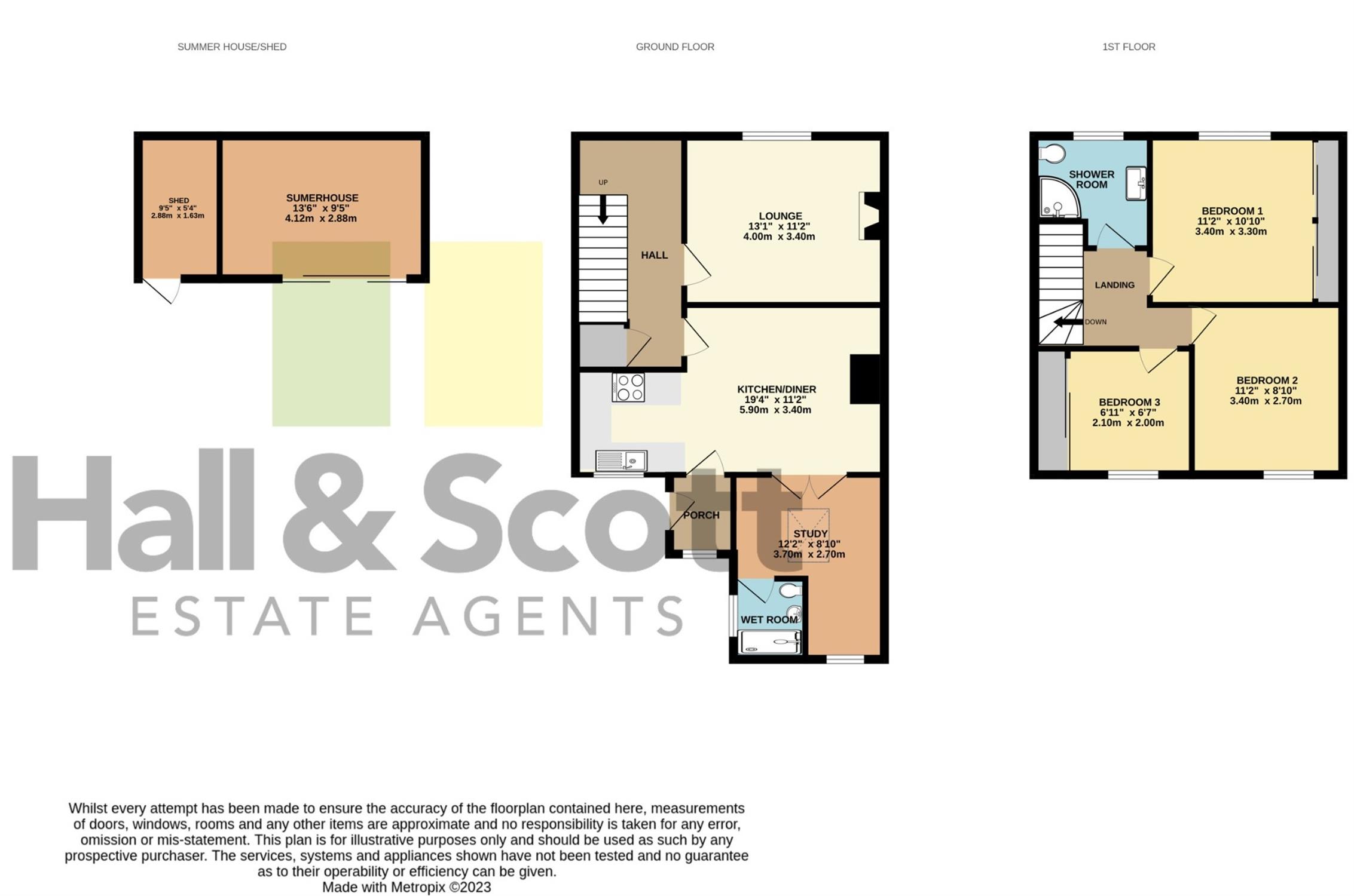 Outside: Front area with a driveway to the side leading to a single garage. The rear garden offers a lovely aspect with views over the valley. There is a large patio area with steps leading down to the lawned garden with shrubs and fruit trees. There is a summer house/office (4.12x2.88) at the end of the garden with light, power and Upvc patio sliding doors with shed (1.63x2.88) to the side and opens onto a timber decked patio.