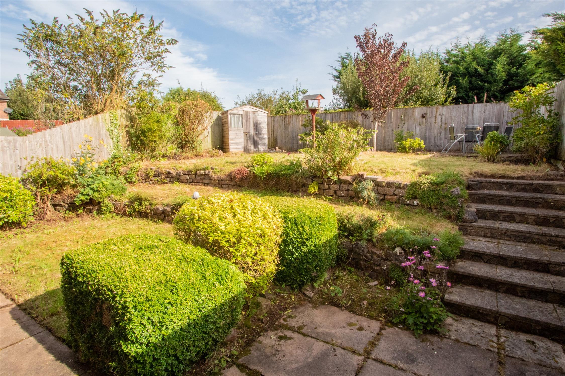 Outside: To the front of the property is a block paved area and tarmac driveway offering parking and leads to the garage (5.54x2.69) with up and over door, light and power and personal door. Side pedestrian access leads to the rear garden with patio area which has steps up to a lawned garden, shrubs and garden shed.