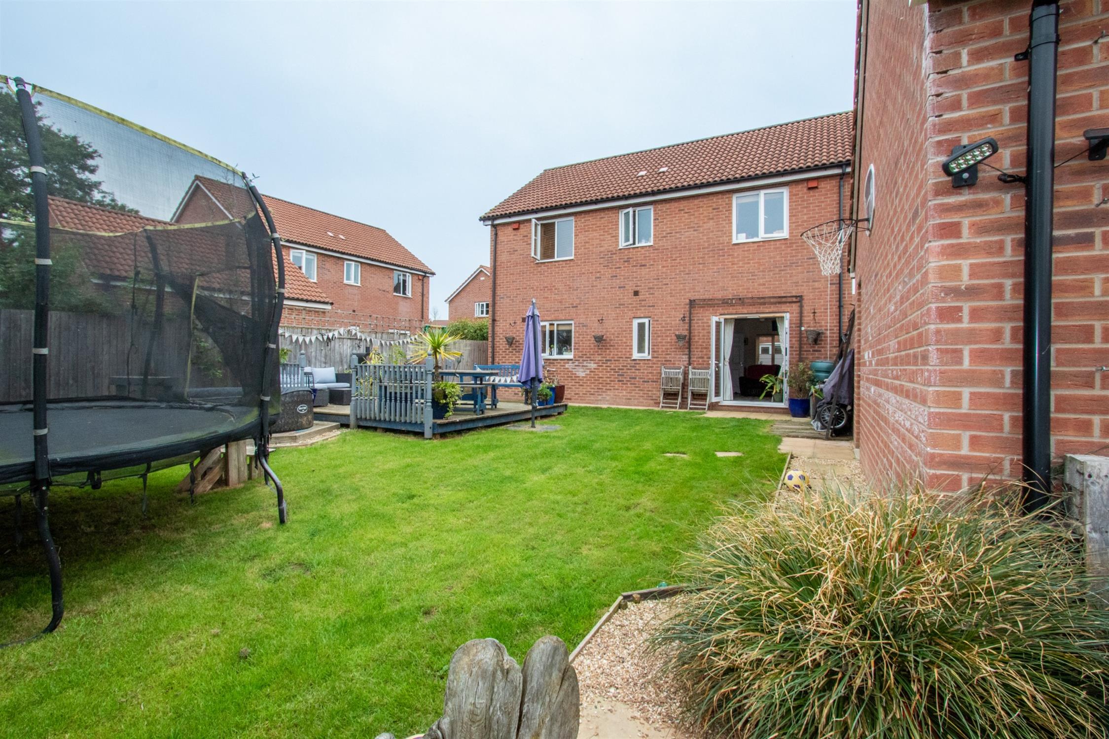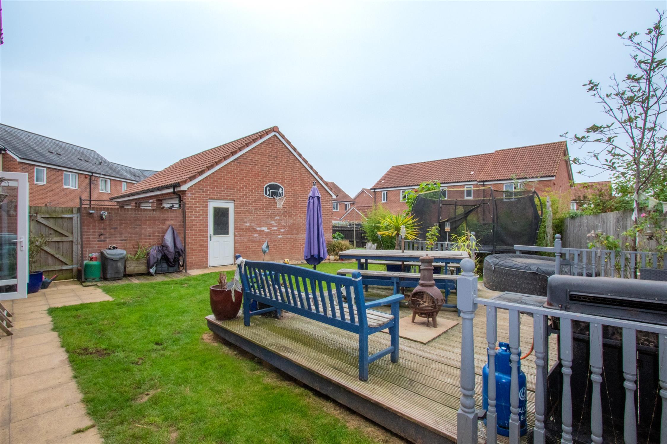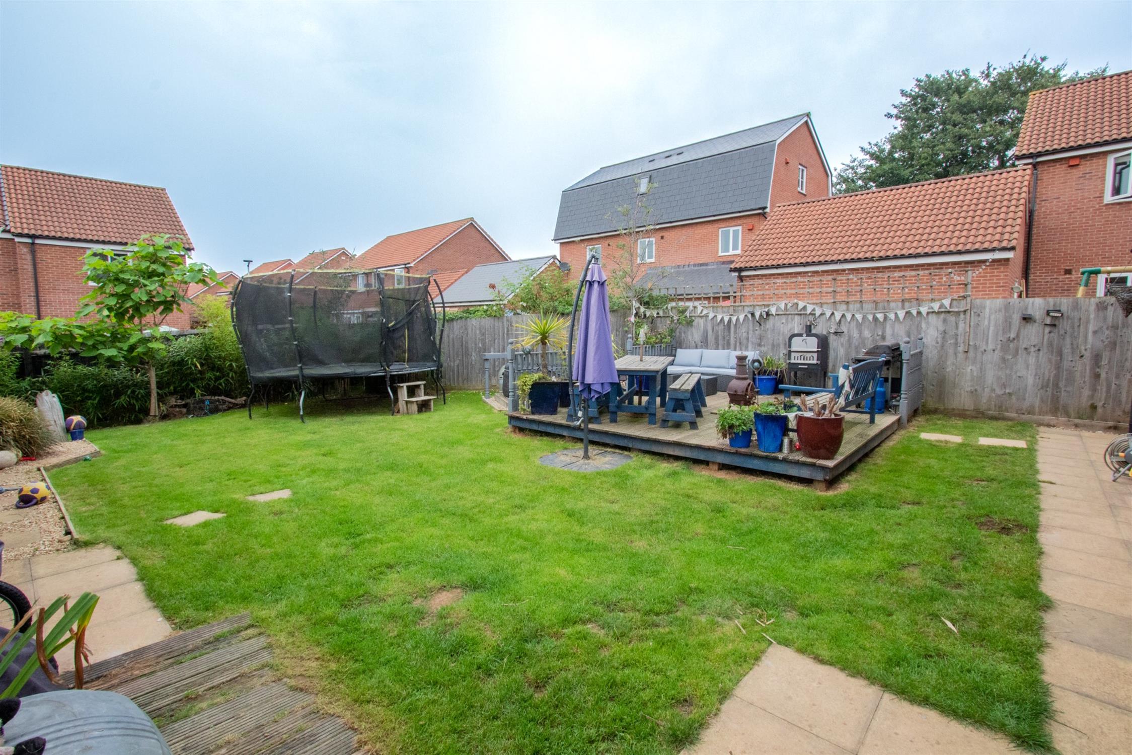 Outside: The rear garden is a great size, paved with lawn and fully enclosed with decked seating area, access to the double garage and gate to the side where there is parking for four cars.