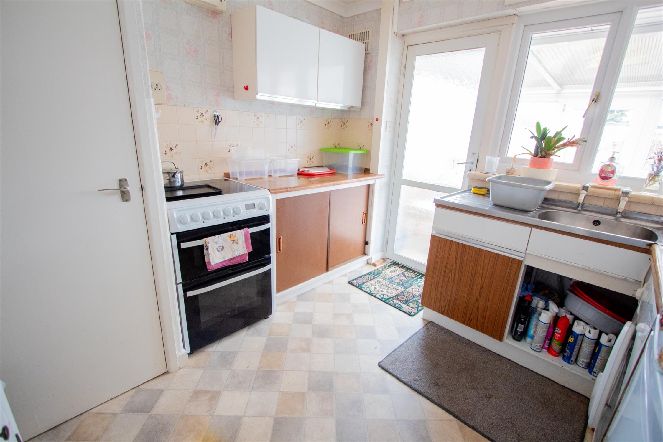 The accommodation which is in need of modernisation and is located on a corner plot comprises: entrance porch, entrance hallway, dual aspect living room, two bedrooms, one with built-in wardrobes and there is a shower room. The kitchen has a range of wall and base units, worktop surfaces and door into the conservatory which offers access into the garden.